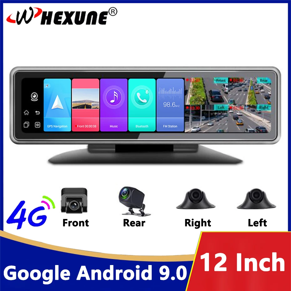 Автомобильный видеорегистратор, 12 дюймов, 4G, Android 9,0, автомобильный 4-канальный видеорегистратор, видеорегистратор, обзор 360 , Wi-Fi, GPS-навигация, ADAS, зеркало заднего вида