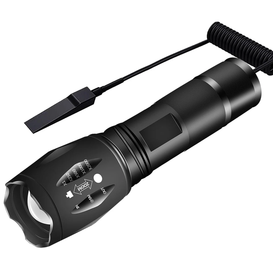 Охотничий фонарик, тактический фонарь с фокусировкой, 5 режимов переключения, для улицы, T6L2Q5, Ультраяркий, водонепроницаемый, с аккумулятором 18650
