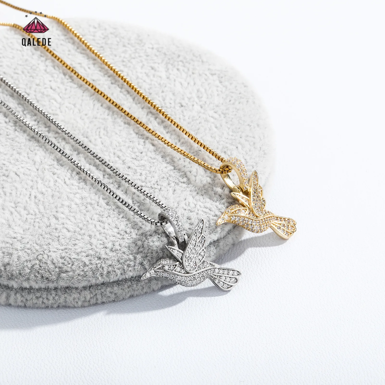 Женское Ожерелье QALEDE из стерлингового серебра 925 пробы, ожерелье с полной алмазной подвеской в виде птицы из мультфильма, Женская цепочка до ключиц, праздничный подарок