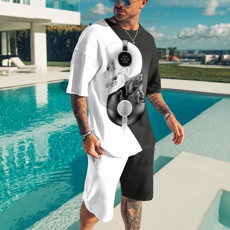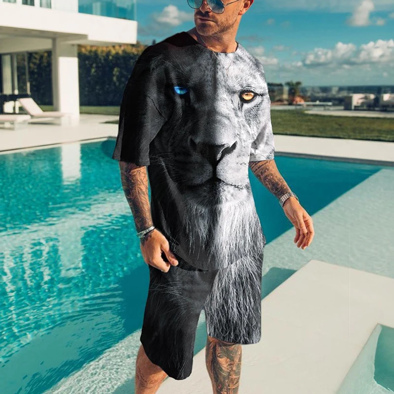 Новинка, летняя футболка, шорты, комплект из двух предметов, спортивный костюм, мужская одежда большого размера, винтажная уличная одежда с 3D принтом, гавайский пляжный комплект для мужчин