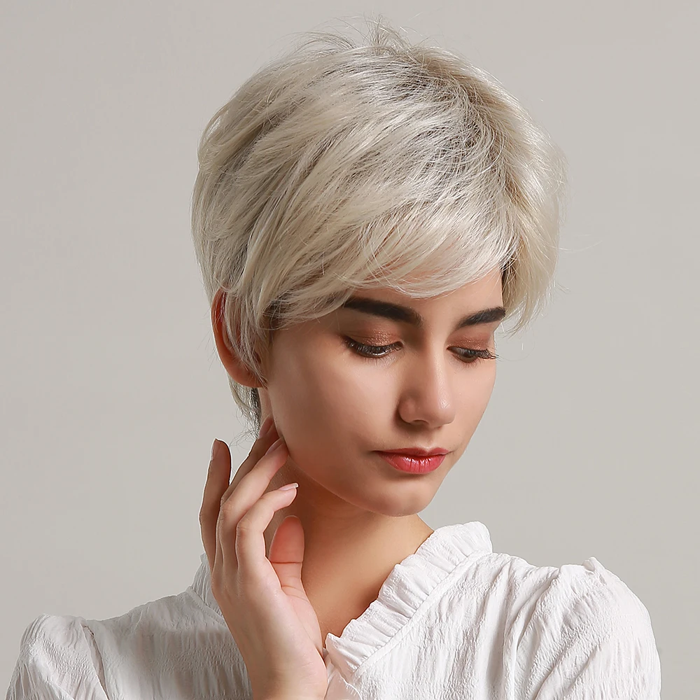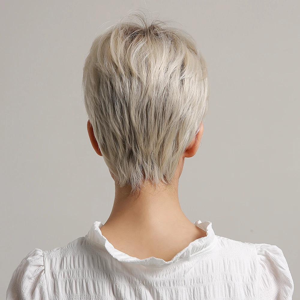 Feature 2Pixie Cut Straight White Grey Hair Wig