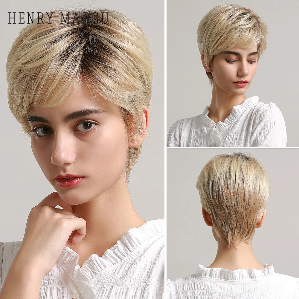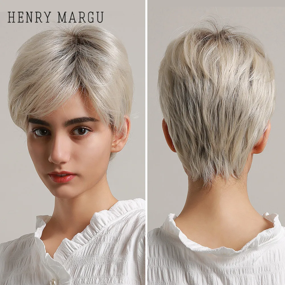 Синтетические Короткие парики для женщин HENRY MARGU, прямые парики из белых и серых волос с боковой челкой, Термостойкое волокно Futura