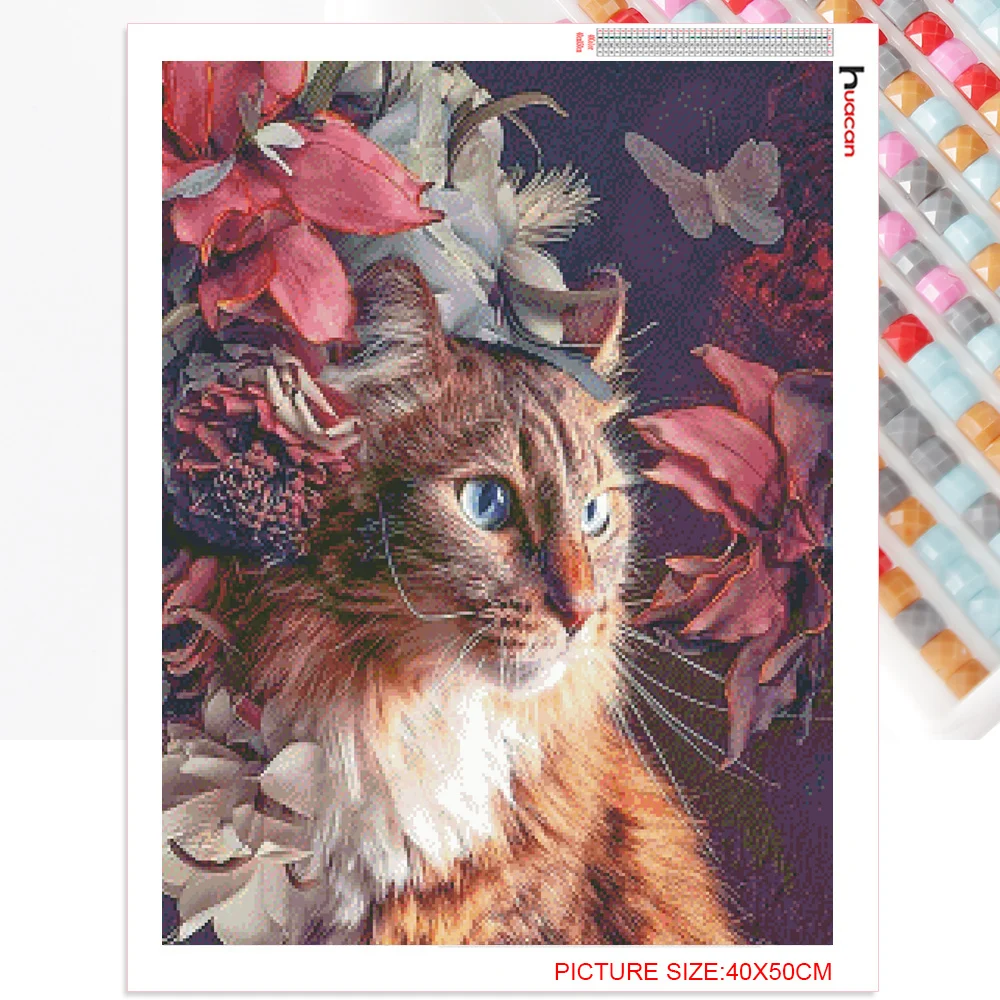 Алмазная 5D картина Huacan сделай сам, мозаика с кошкой, цветком, вышивка с животными, картина Стразы для дома