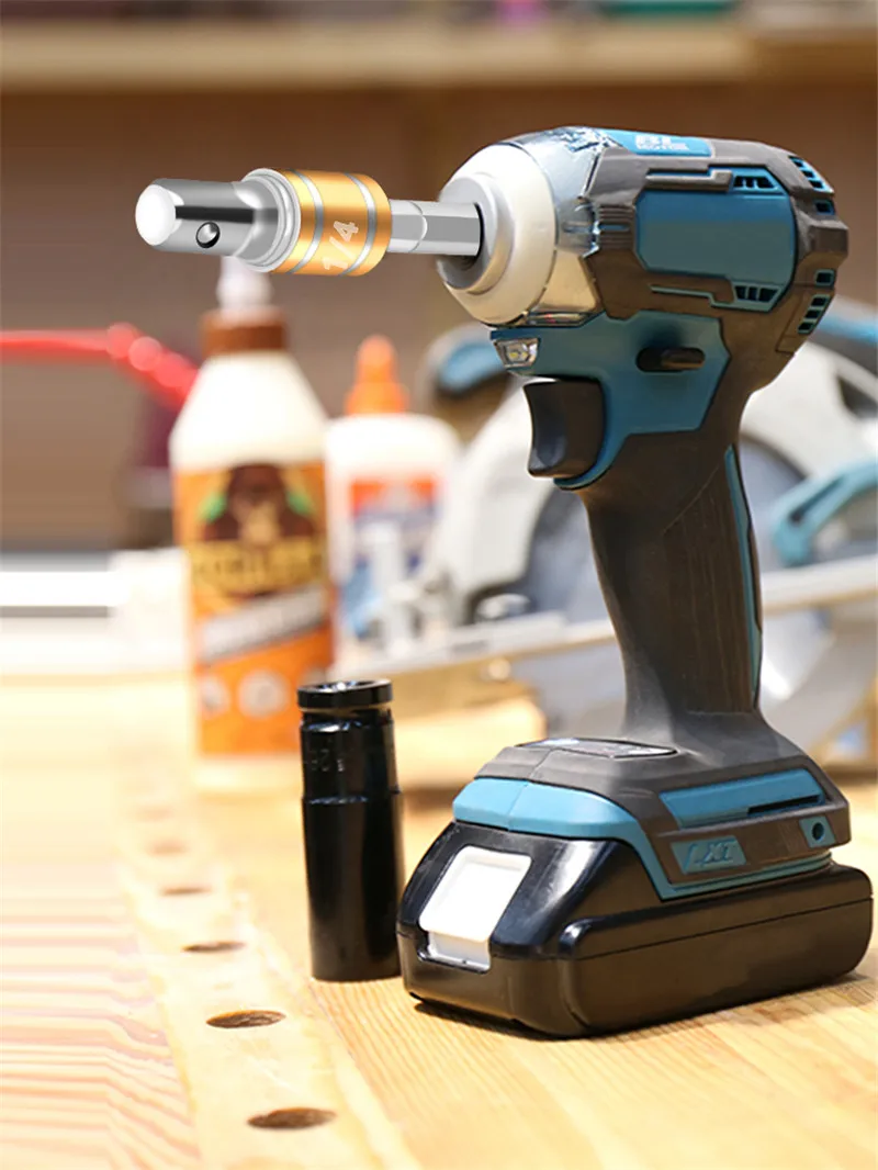 Пружинный шаровой замок обеспечивает плотное прилегание к головке водителя, чтобы предотвратить скольжение во время использования. Специально обработан, чтобы надежно поместиться в ручной драйвер, дрель или ударный ключ.