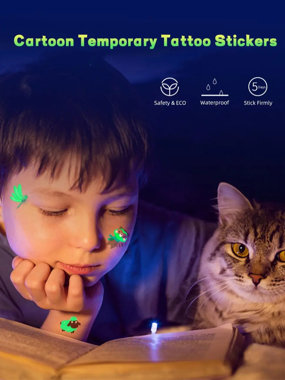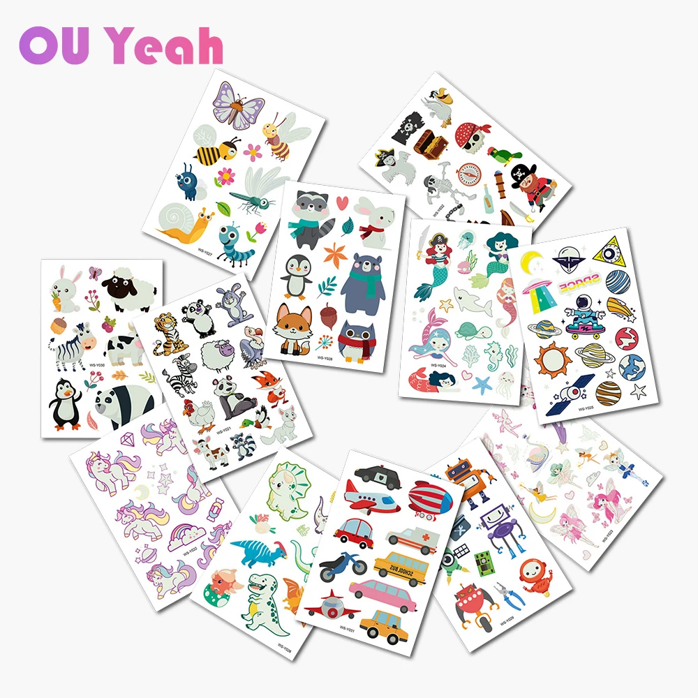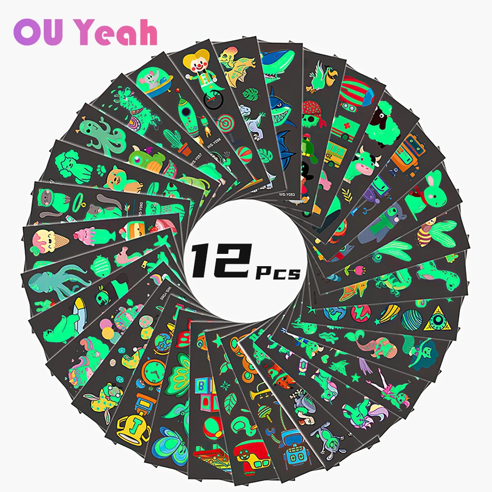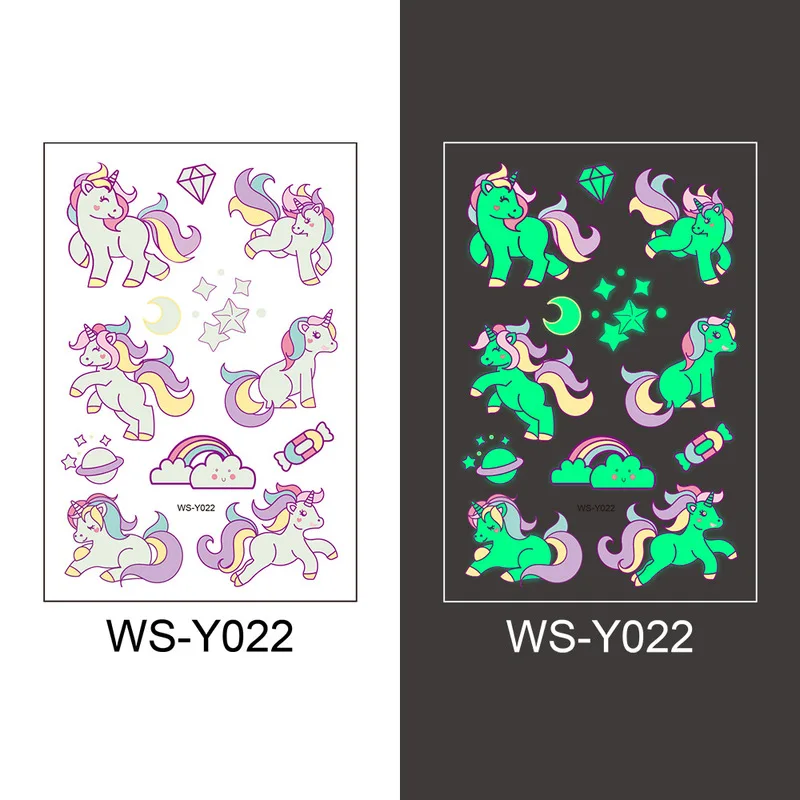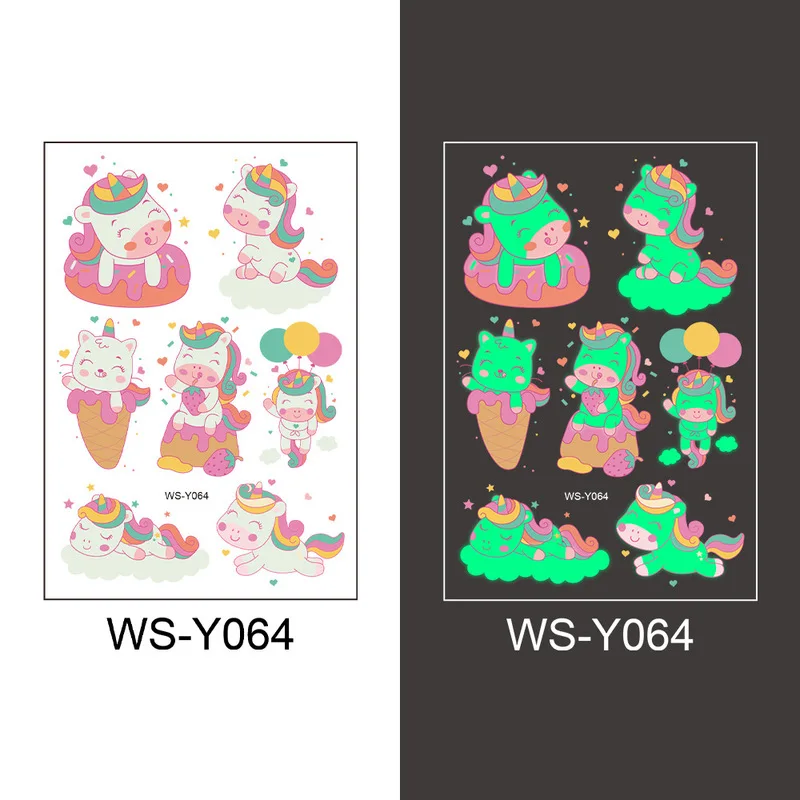 12 шт. в комплекте светящиеся Мультяшные временные татуировки наклейки для детей кавайные сказочные животные Детские декоративные наклейки набор для макияжа