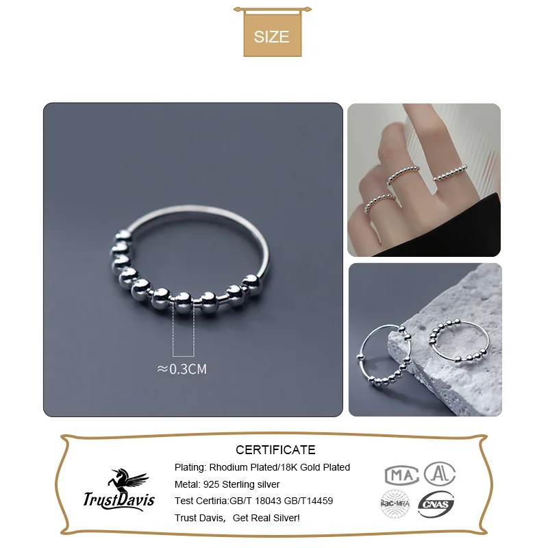 Trustdavis минималистичное Стерлинговое Серебро 925 пробы Модное 3 мм шариковое кольцо на палец для женщин свадебный подарок на день рождения ювелирные изделия DA2674