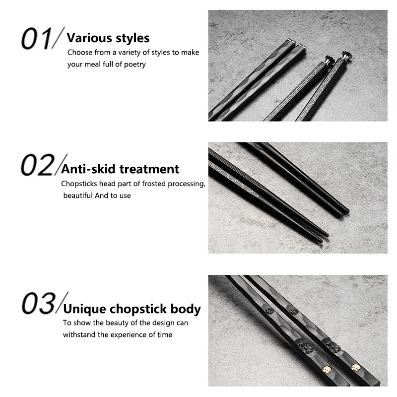 Особенности:1. Нескользящие: эти палочки для еды имеют противоскользящий дизайн. Усиленный нескользящий наконечник для палочек делает палочки для еды легче захватывать еду и лучше не скользить. Палочки для еды с текстурированным корпусом удобнее в использовании и удобнее держать под рукой. Палочки для еды не скатываются на руку.2. Безопасный Материал: Изготовлен из высококачественного сплава, износостойкий, высокотемпературный, не легко сломать. Они не будут скрывать грязь3. Легко чистить: они не скрывают грязь, не впитывают воду, не впитывают влагу, легко и удобно чистить.4. Прочный: многоразовые палочки для еды, которые не беспокоятся о повреждении во время использования или чистки5. Легко чистить: можно чистить холодной водой или теплой водой, рекомендуется ручная стирка, протирать тканью после очистки и дезинфицировать их стерилизованным шкафом.6. Широко используется: обязательный предмет для еды типичной азиатской пищи, такой как суши, рамен, горячий горшок, кунг ПАО курица, пельменей, рис и другие продукты питания.Конечно, вы также можете использовать его, чтобы сделать ежедневную еду как спагетти.6. Идеальный подарок: идеальный подарок для ваших друзей или семьи на любой случай.