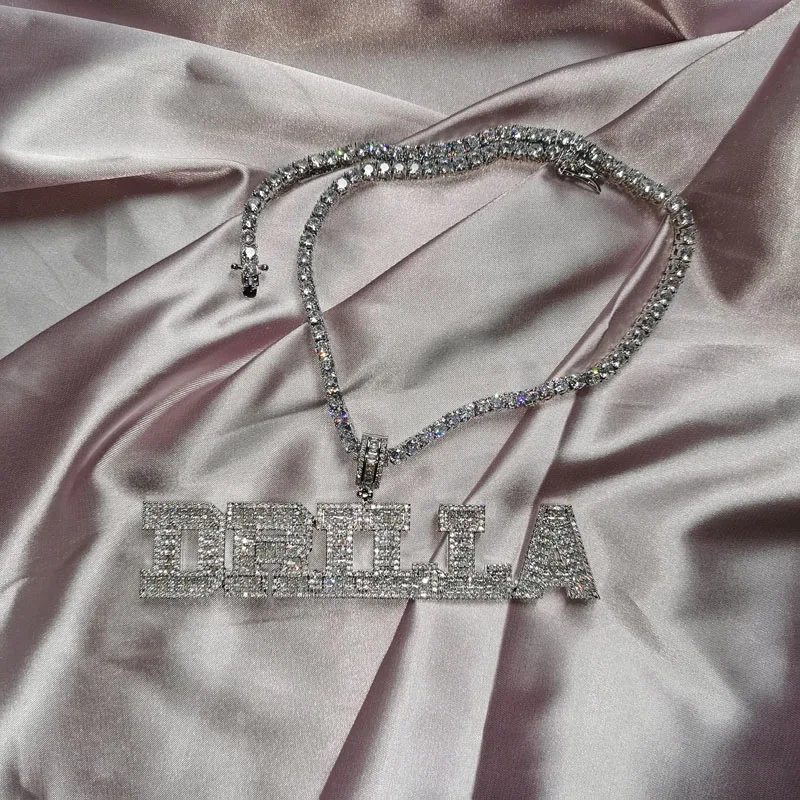 Подвеска с именем под заказ с кубинской цепочкой Стразы 9 мм, ожере...