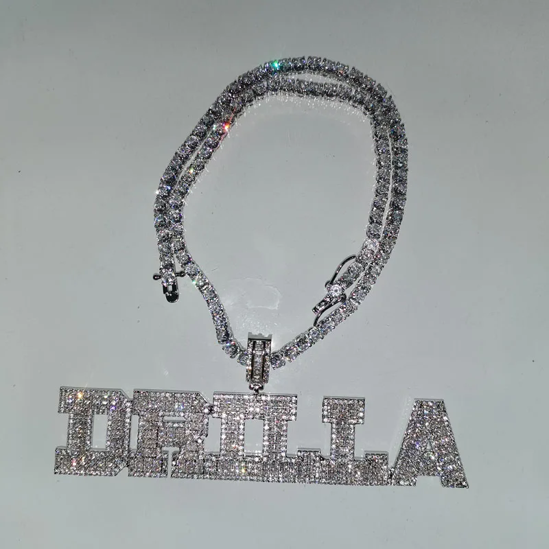 Ожерелье с именем на заказ, циркониевая багета AAAA, цепочка с подвесками, ожерелья для мужчин и женщин, ювелирные изделия в стиле хип-хоп