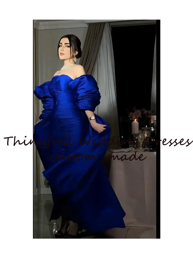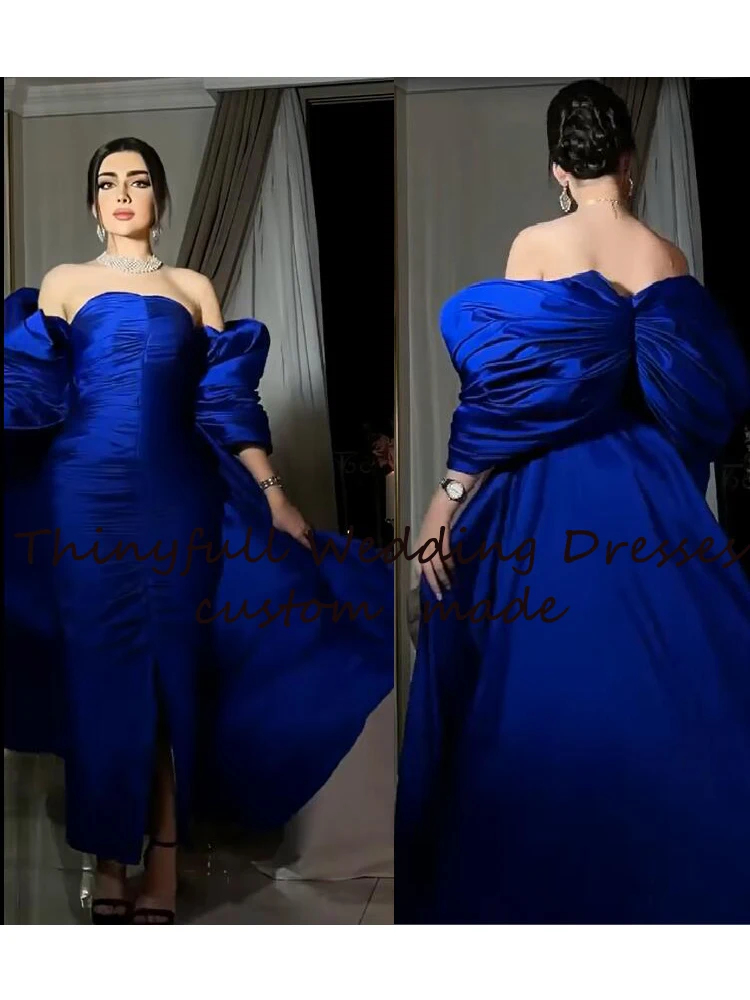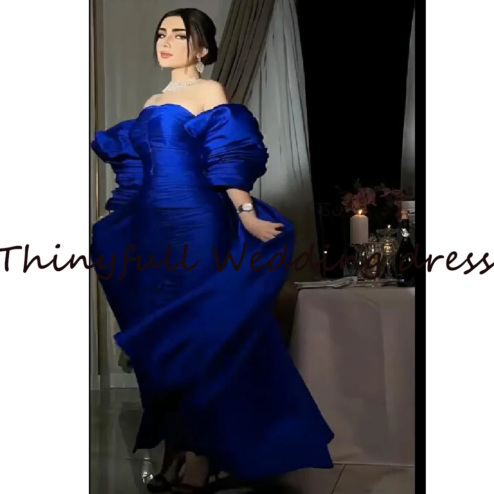 Женское вечернее платье без бретелек Thinyfull, синее платье с длинным шлейфом для выпусквечерние вечера