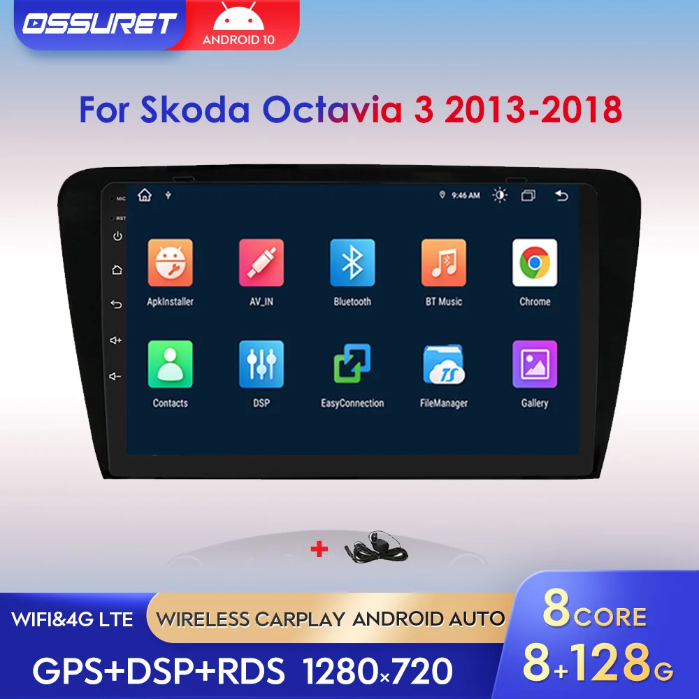 Мультимедийный плеер на Android 10, 10,1 дюйма, GPS, Wi-Fi, USB, 4G, BT, без DVD, для Skoda Octavia 3 III 2013-2018
