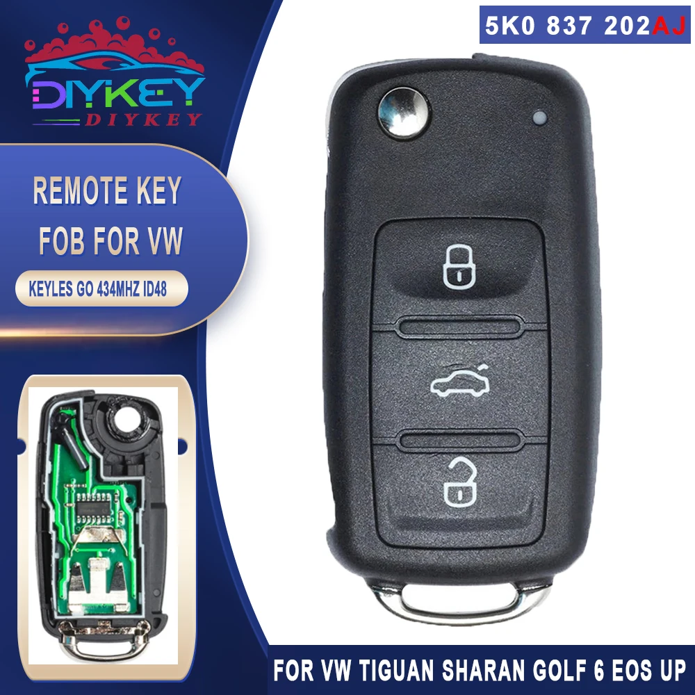 Ключ дистанционный DIYKEY 5K0837202AJ 5K0 837 202 AJ, 434 МГц, чип ID48 для VW Tiguan Sharan Golf 6 EOS Up RV Scirocco
