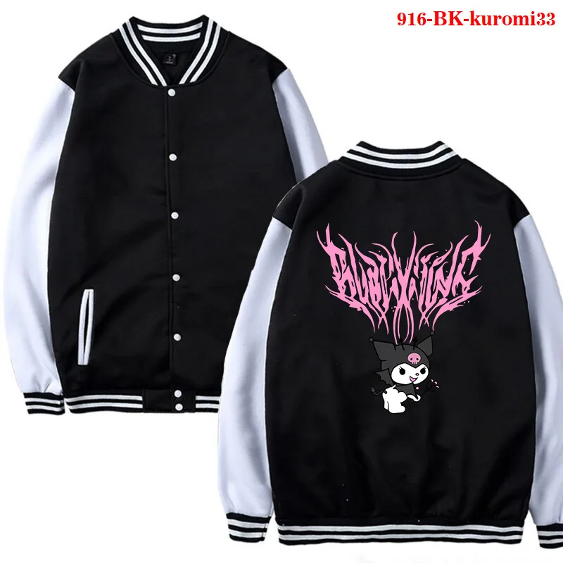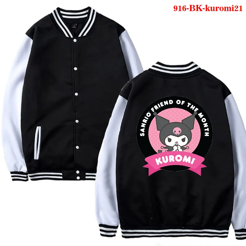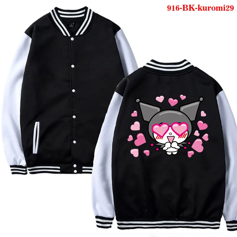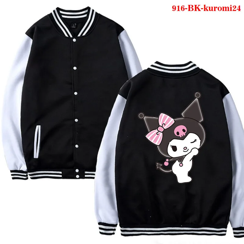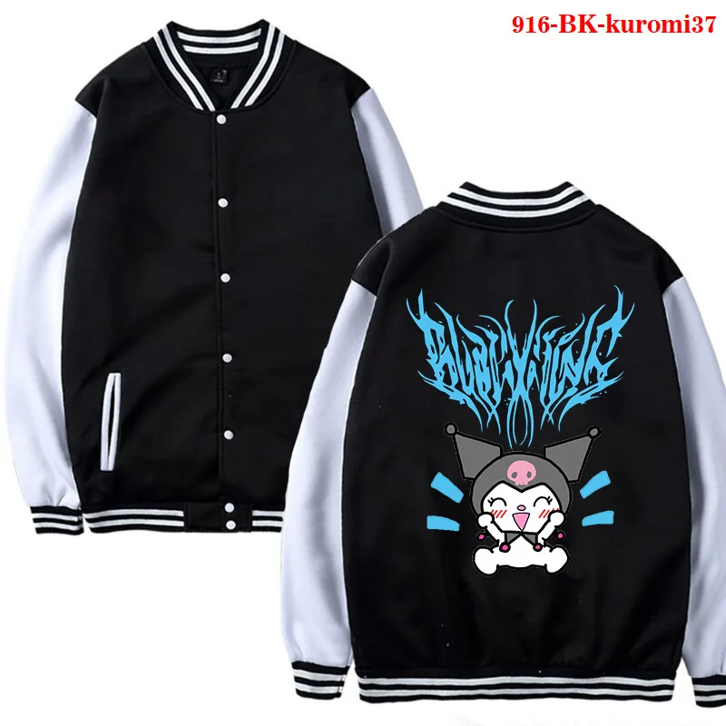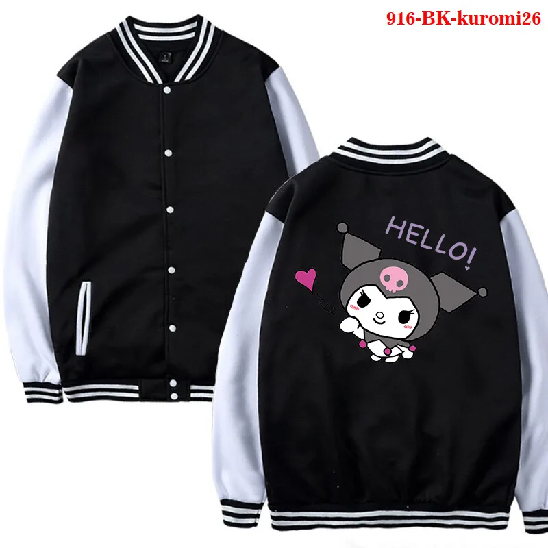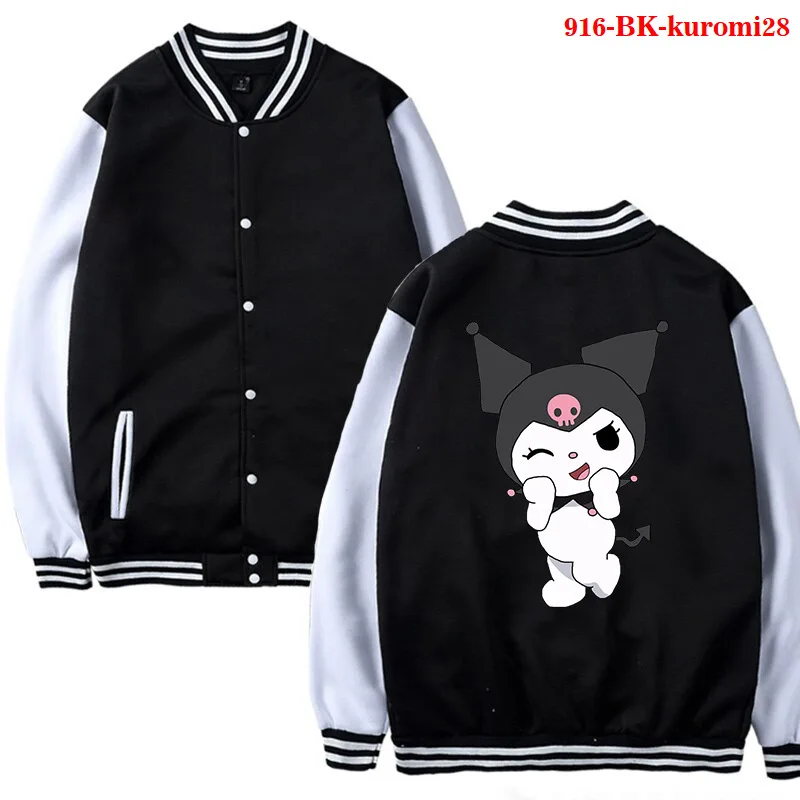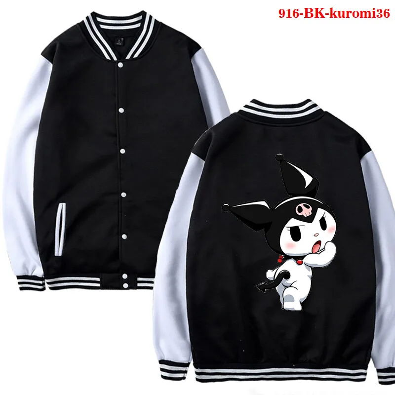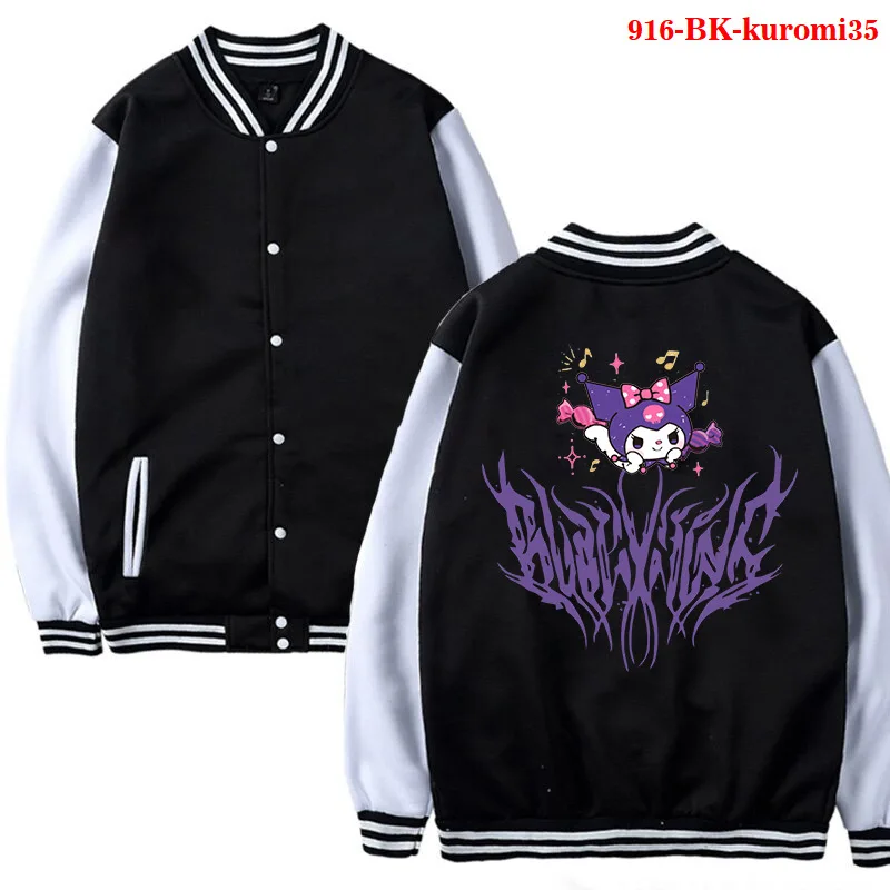 Мужская и Женская бейсбольная рубашка Sanrioed Kuromi Mymelody с черным принтом, спортивная одежда для взрослых, бейсбольная форма, одежда для пар