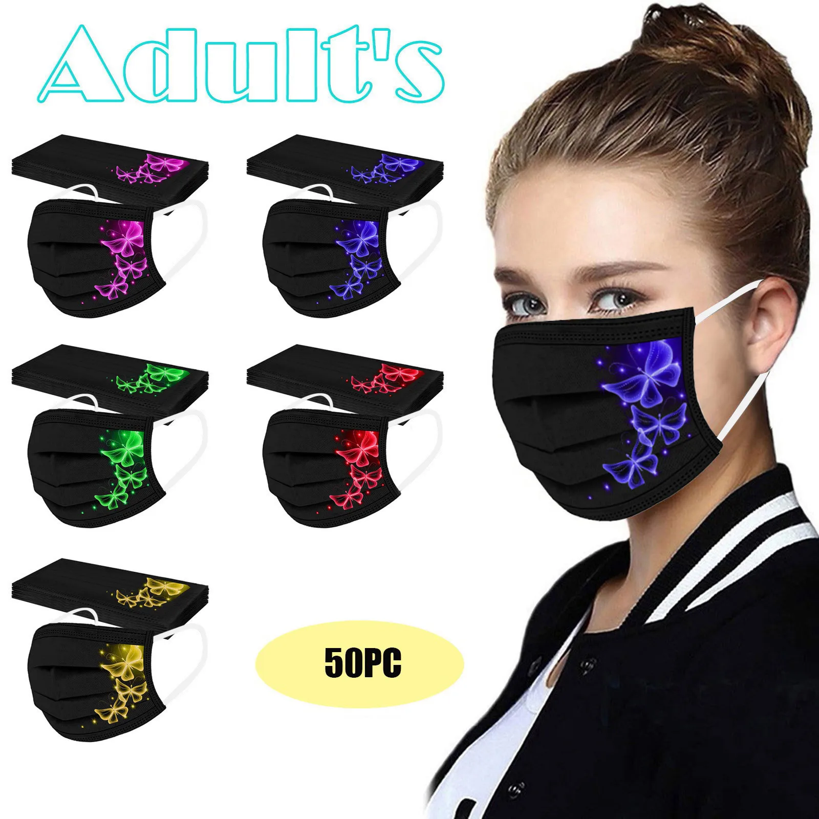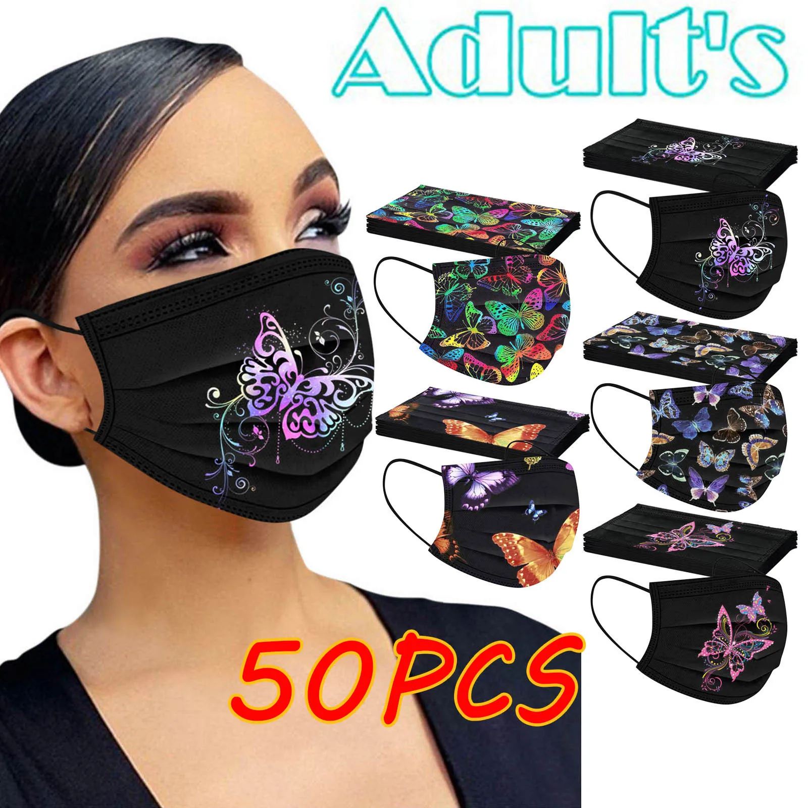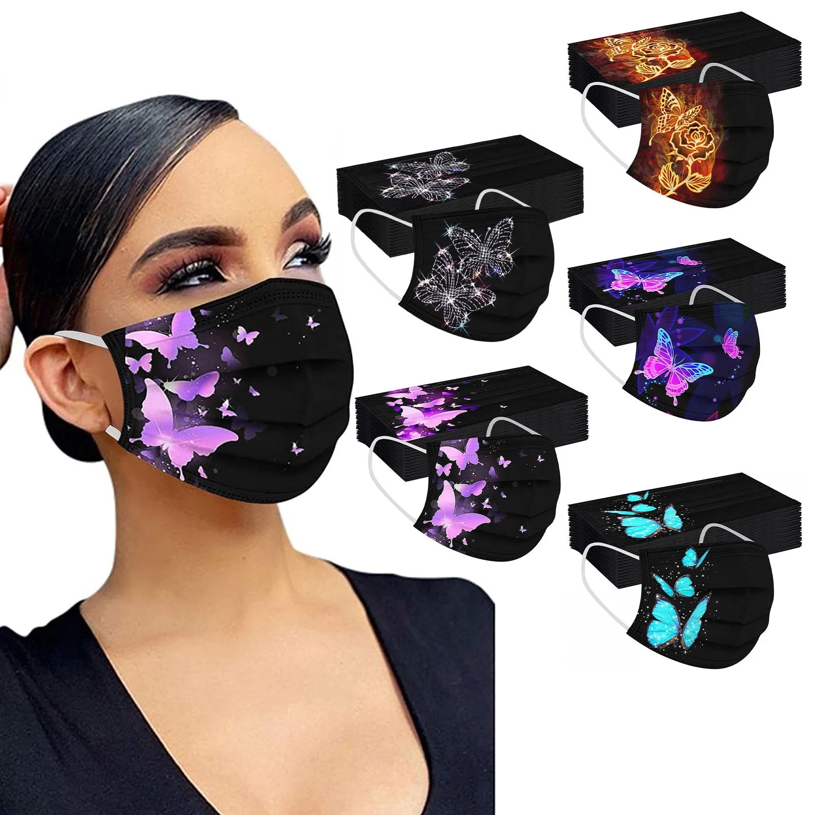 Маска одноразовая трехслойная из нетканого материала с бабочками, 50 шт.