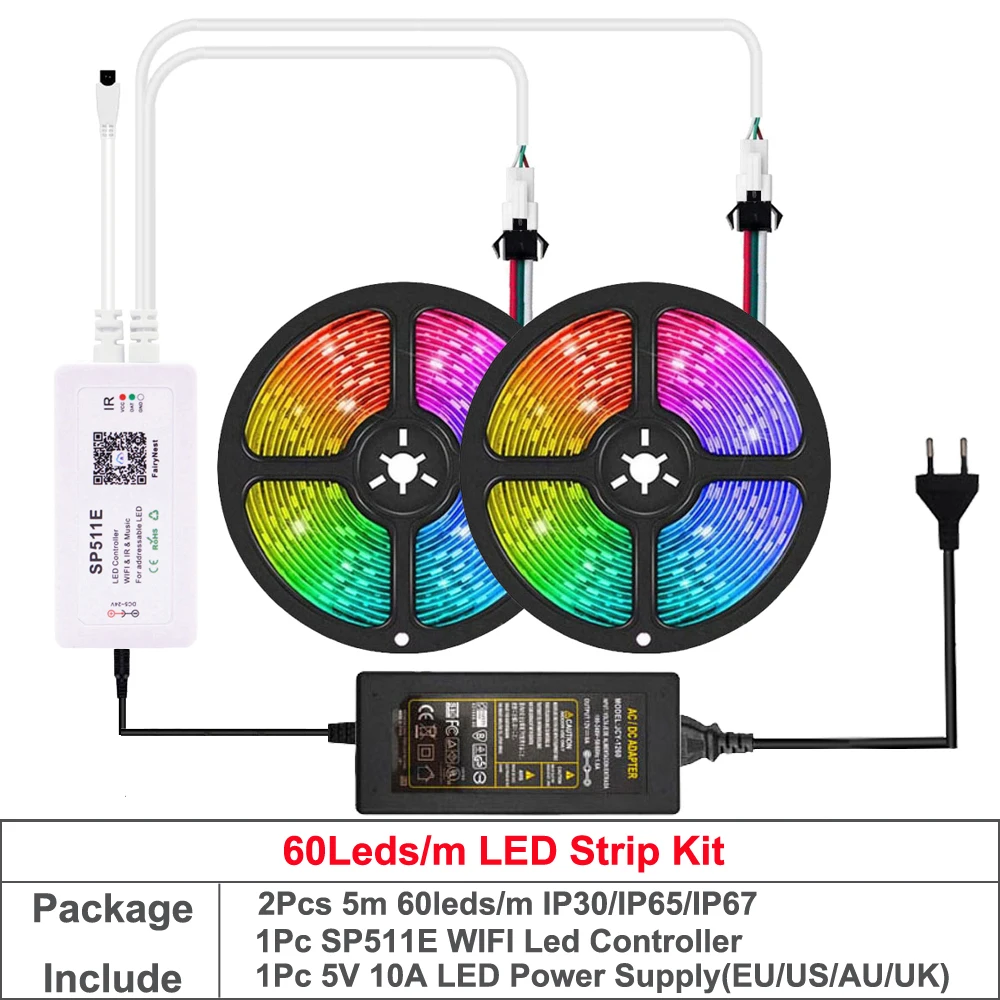 Пиксельная Светодиодная лента WS2812B, 5 в постоянного тока, модифицируемая Пиксельная RGB Светодиодная лента, Wi-Fiпульт дистанционного управленияМузыка SP511E, двойной выход, умный голосовой контроллер Alexa APP, комплект питания