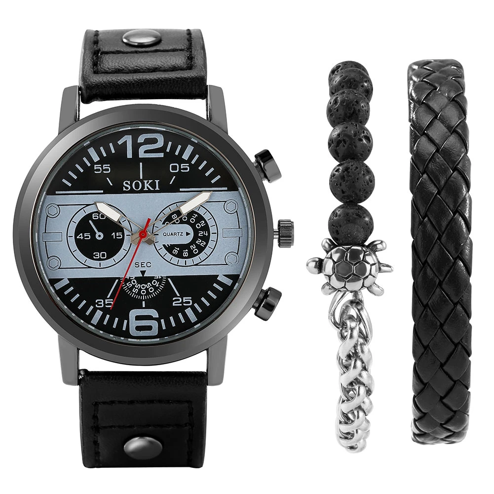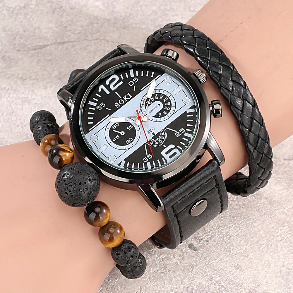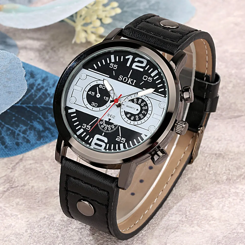Часы наручные мужские кварцевые с кожаным ремешком, 2021