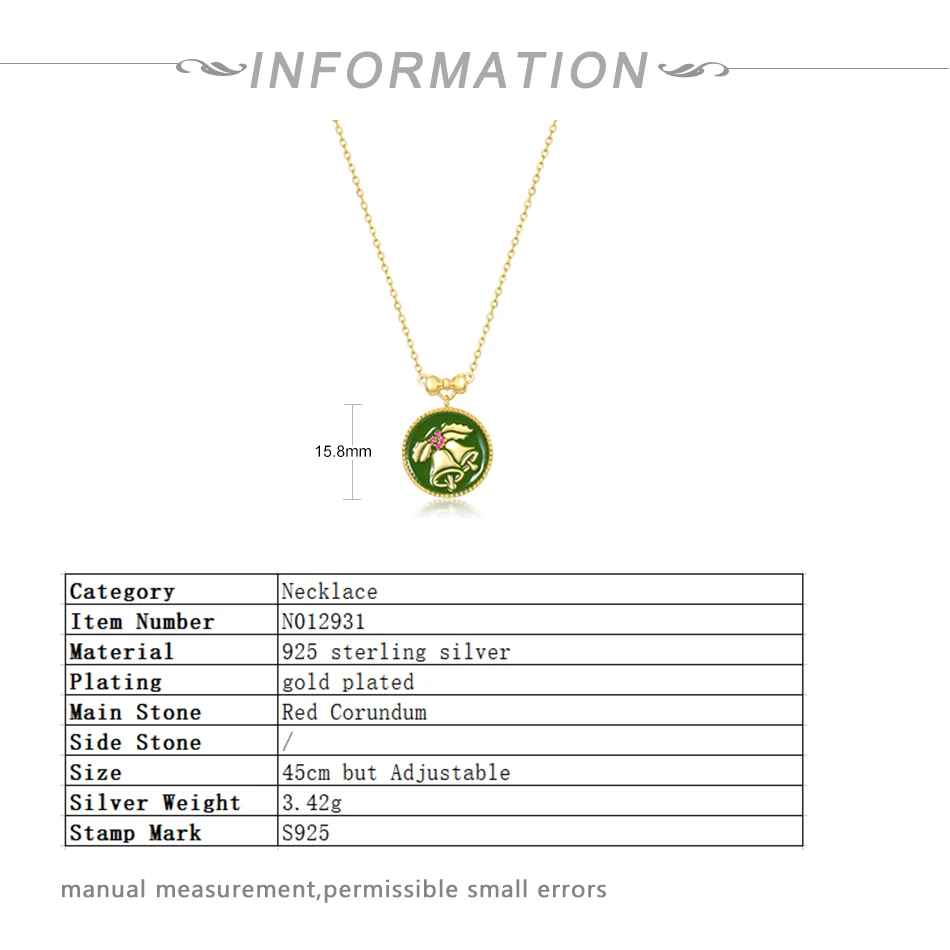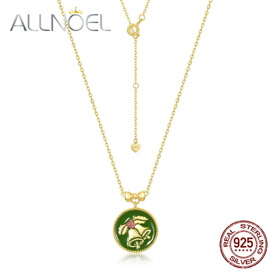 ALLNOEL, Рождественский колокольчик, ожерелье для женщин, серебро 925 пробы, зеленая эмаль, красный корунд, ожерелье, настоящая позолота, длина 45 см