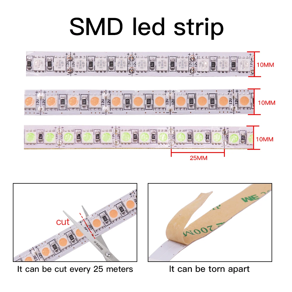 Тип светодиодный: SMD5054/SMD2835/SMD5630/SMD4040/SMD5050/SMD7020Цвет: белый/теплый белыйСтепень защиты: не водонепроницаемый IP21/водонепроницаемый IP65/водонепроницаемый IP67(IP67 Водонепроницаемый без самоклеющейся ленты)Количество СВЕТОДИОДНЫЙ: 60 светодиодный s/m,120 светодиодный s/m,240 светодиодный s/mРабочее напряжение: 12 В постоянного токаУгол обзора: 120 ° ~ 140 °Рабочая температура: от-20 до 50 °Цветовая температура: теплый белый: 3000-3500K белый: 6000-6500K / 5054-7000-9000KРазмер:5054 60 Светодиодный s/m: ширина печатной платы 10 мм; Мощность 6-8 Вт/м; Люмен 13-17лм/светодиодный5054 120 светодиодный s/m: ширина печатной платы 10 мм; Мощность 10-12 Вт/м; Люмен 18-22лм/светодиодный5050 60 светодиодный s/m: ширина печатной платы 10 мм; Мощность 3-4 Вт/м; Люмен 12-15 лм/светодиодный5050 120 светодиодный s/m: ширина печатной платы 10 мм; Мощность 9-12 Вт/м; Люмен 15-20 лм/светодиодный2835 120 светодиодный s/m: ширина печатной платы 8 мм/10 мм; Мощность 5-7 Вт/м; Люмен 10-14 лм/светодиодный2835 240 светодиодный s/m: ширина печатной платы 10 мм; Мощность 8-10 Вт/м; Люмен 16-18лм/светодиодный2835 480 светодиодный s/m: ширина печатной платы 15 мм; Мощность 16-20 Вт/м; Люмен 22-24лм/светодиодный5630 60 светодиодный s/m: ширина печатной платы 10 мм; Мощность 6-8 Вт/м; Люмен 14-16 лм/светодиодный5630 120 светодиодный s/M: ширина печатной платы 10 мм, мощность 8-10 Вт/м; Люмен 18-20 лм/светодиодныйПосылка включает:1*5 м Светодиодная лента(Не включает блок питания и контроллер)