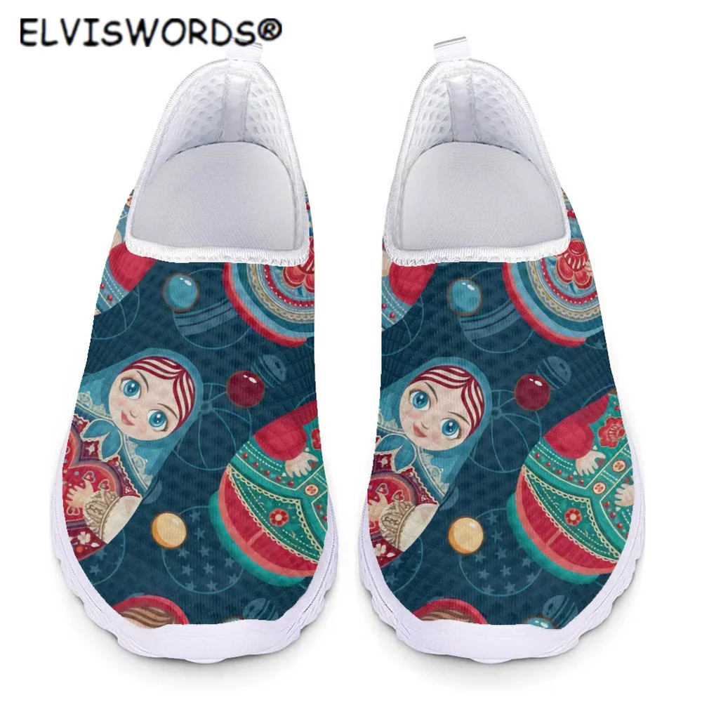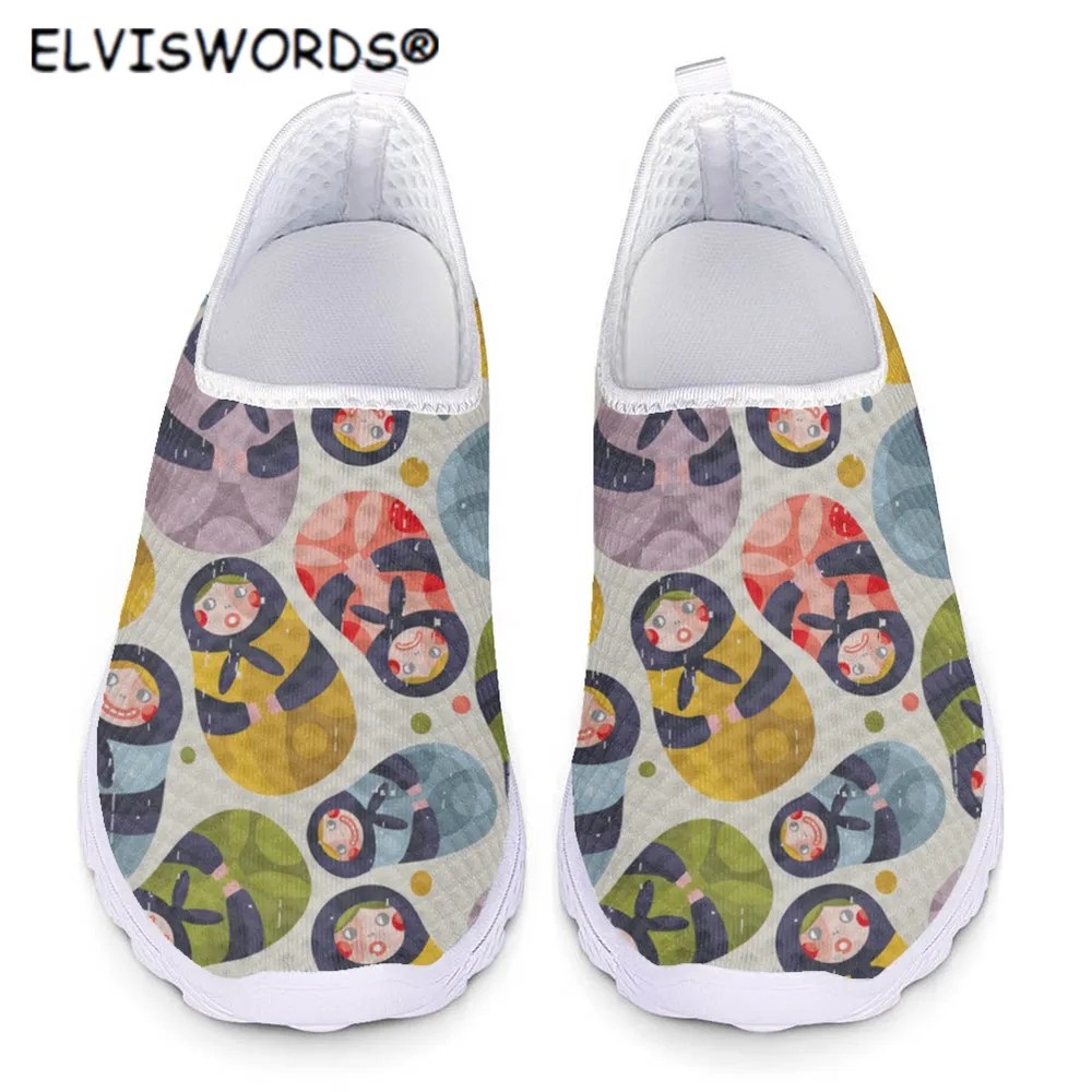 ELVISWORDSдышащая женская обувь на плоской подошве; Женская обувь на плоской подошве; Матрешка; Сетчатая обувь для бега; Кроссовки на шнуровке для женщин