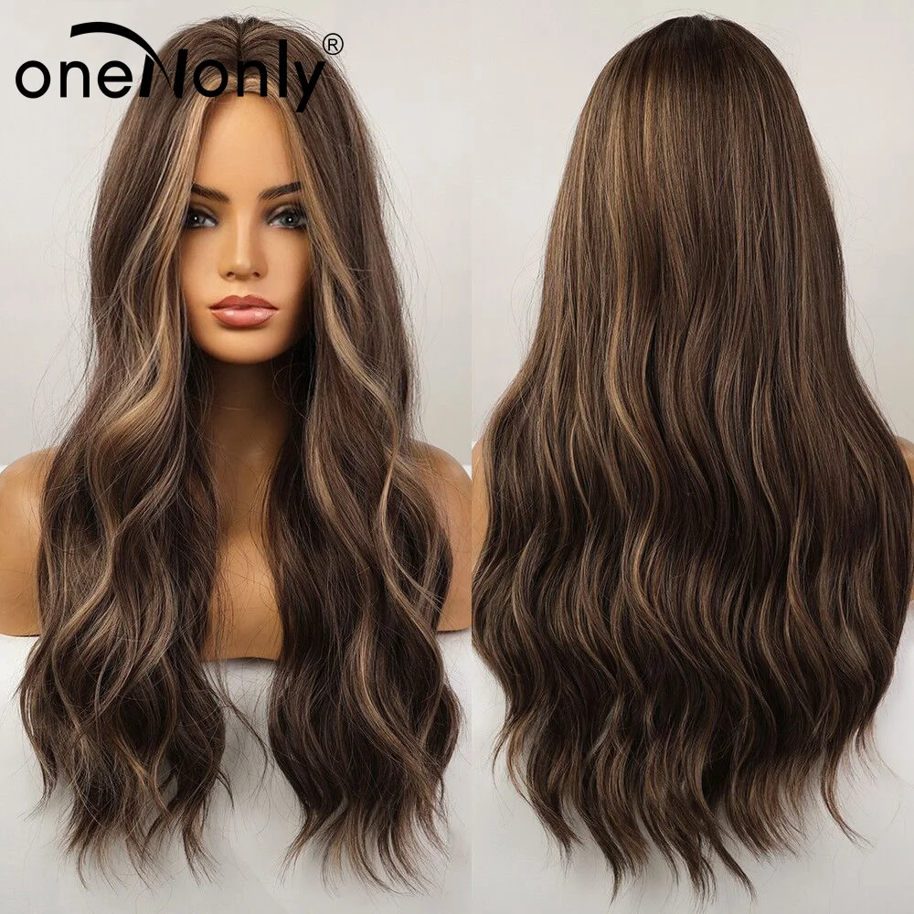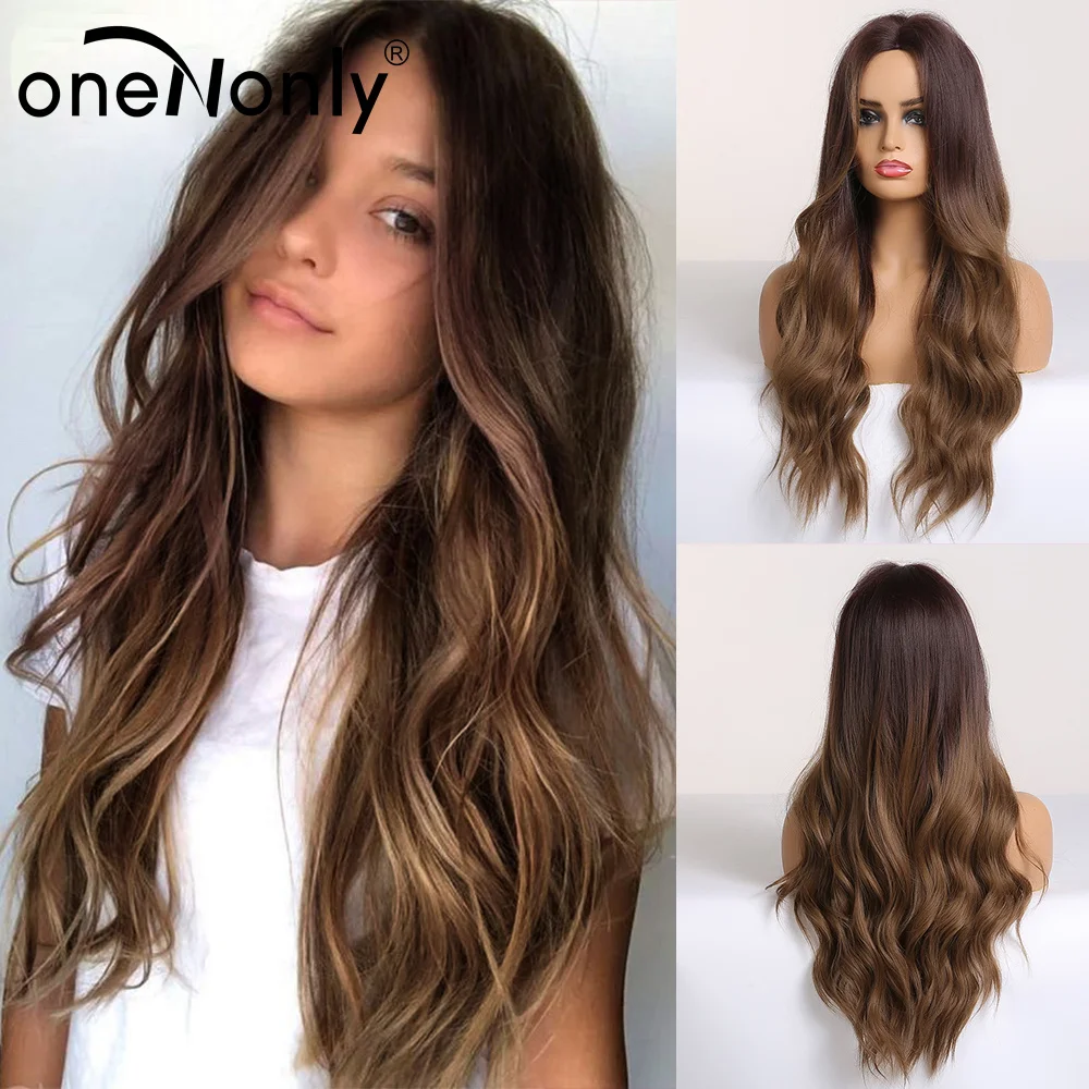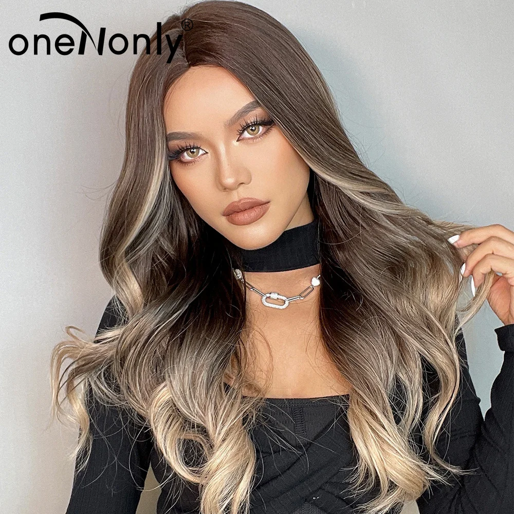 OneNonly длинные волнистые женские парики Омбре коричневый блонд парик натуральные ежедневные синтетические парики термостойкие волосы из волокна