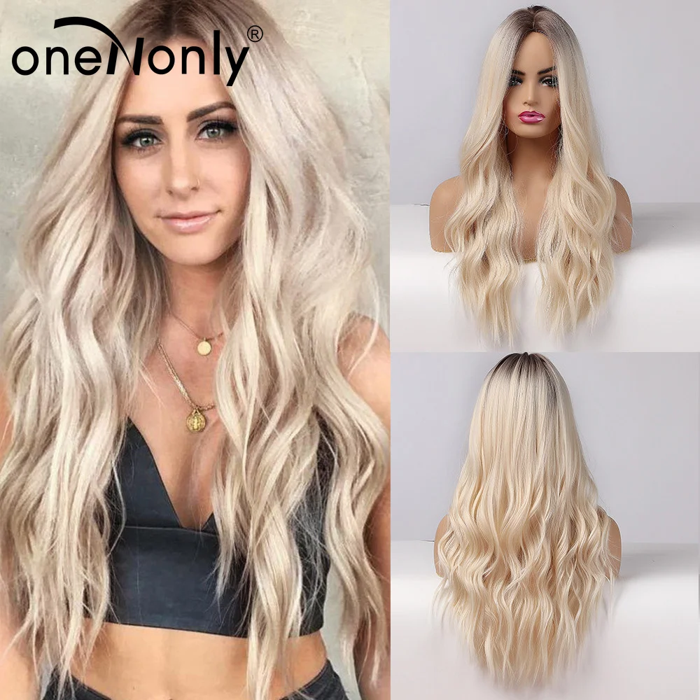 OneNonly коричневый блонд парик Длинные волны синтетические парики ...