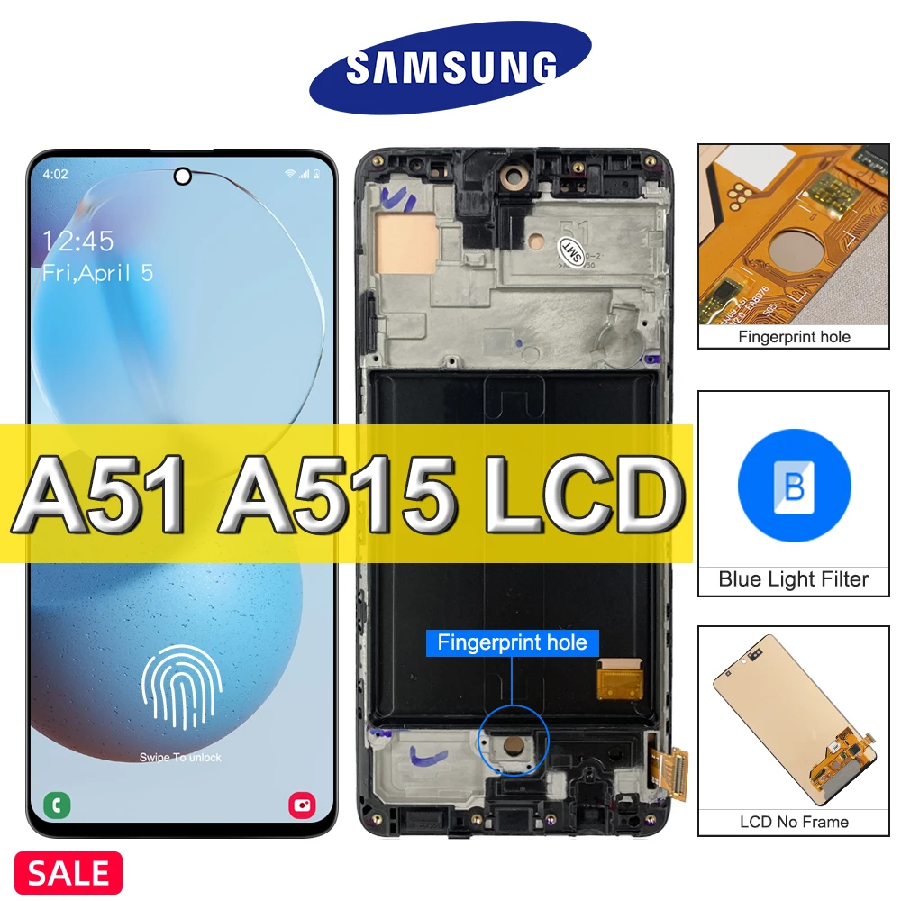 6,5 "супер AMOLED для Samsung Galaxy A51 ЖК-дисплей с отпечатком пальца, сенсорный экран дигитайзер Galaxy A515F SM-A515F/DS,A515F/DSN