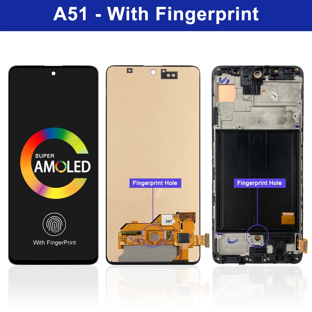 6,5 "Super AMOLED для Samsung Galaxy A51, ЖК-дисплей со сканером отпечатков пальцев, сенсорный экран, дигитайзер, Galaxy A515F SM-A515FDS,A515FDSN