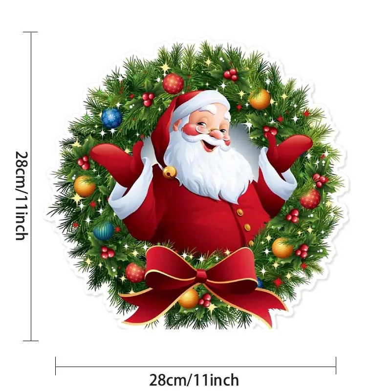 Рождественский венок, наклейка на окно, рождественская елка, Санта-...