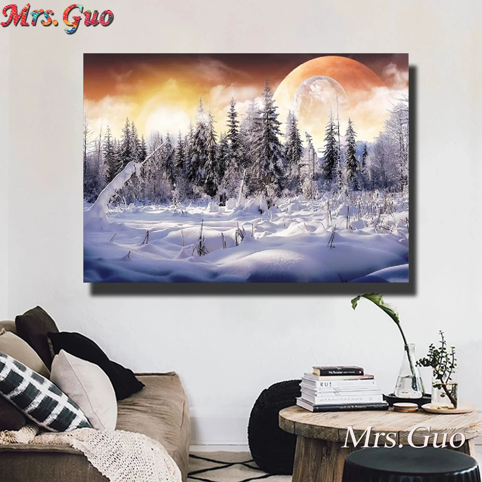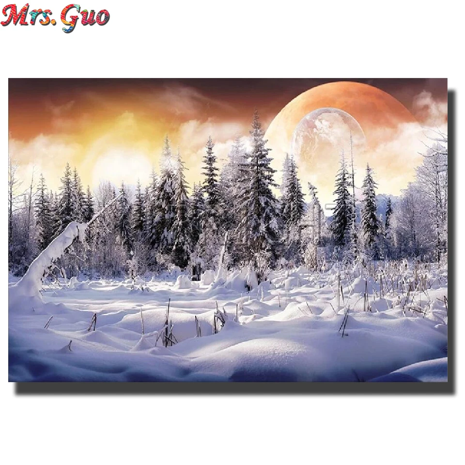 DIY 3D Алмазная картина лес полная круглая Алмазная мозаика закат полная квадратная Алмазная вышивка крестом зимний пейзаж