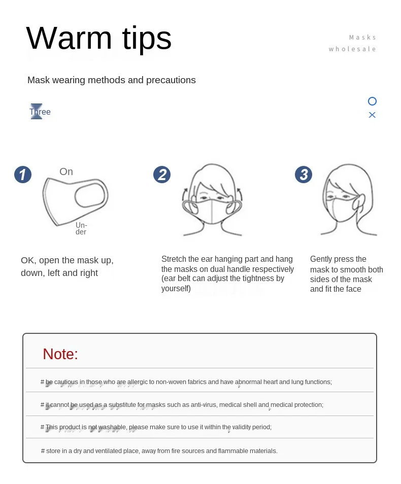 50 шт., маски для лица для взрослых, модные одноразовые, высокое качество, 3 слоя, крючок для ушей, Рождественский нетканый Mascarillas, пылезащитный Masken MasqueМатериал: Нетканая ткань + выдувная ткань из расплаваРазмеры: 17,5*9,5 см (для взрослых)Упаковка: opp мешокПрименимые люди: ВзрослыеОсобенности продукта:1. Регулируемый переносице, высокая степень посадки, лучше подходит для формы носа, предотвращает попадание частиц в зазор, повышает комфорт при ношении.2. Эластичный пояс, удобный и не тянущийся, прочный, не сломанный.3. Трехслойный фильтрующий слой, новый материал, удобный, безвкусный, без раздражения кожи.4. Без запаха, без раздражения, эффективная изоляция вредных частиц.Примечание:1. Поскольку измерения выполнены вручную, допускается погрешность в 1-3 см, пожалуйста, поймите!2. Поскольку угол съемки и монитор отличаются, могут быть некоторые ошибки, пожалуйста, поймите!