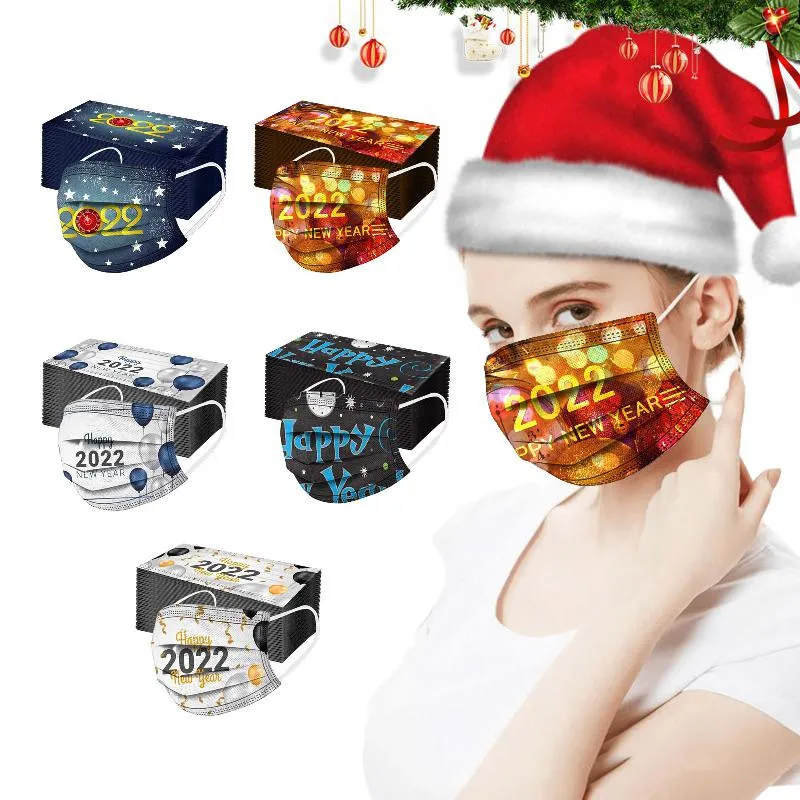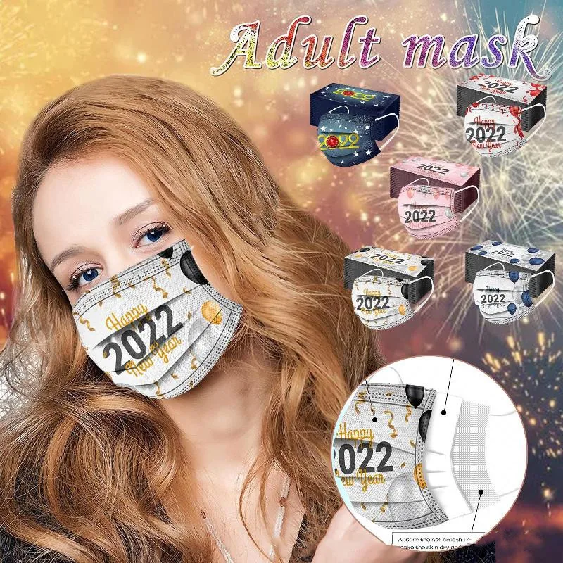 Новинка 2022 маска для взрослых 50 шт. одноразовая 3-слойная маска с ушным крючком Рождественская Нетканая маска для защиты от пыли модная маска для рта