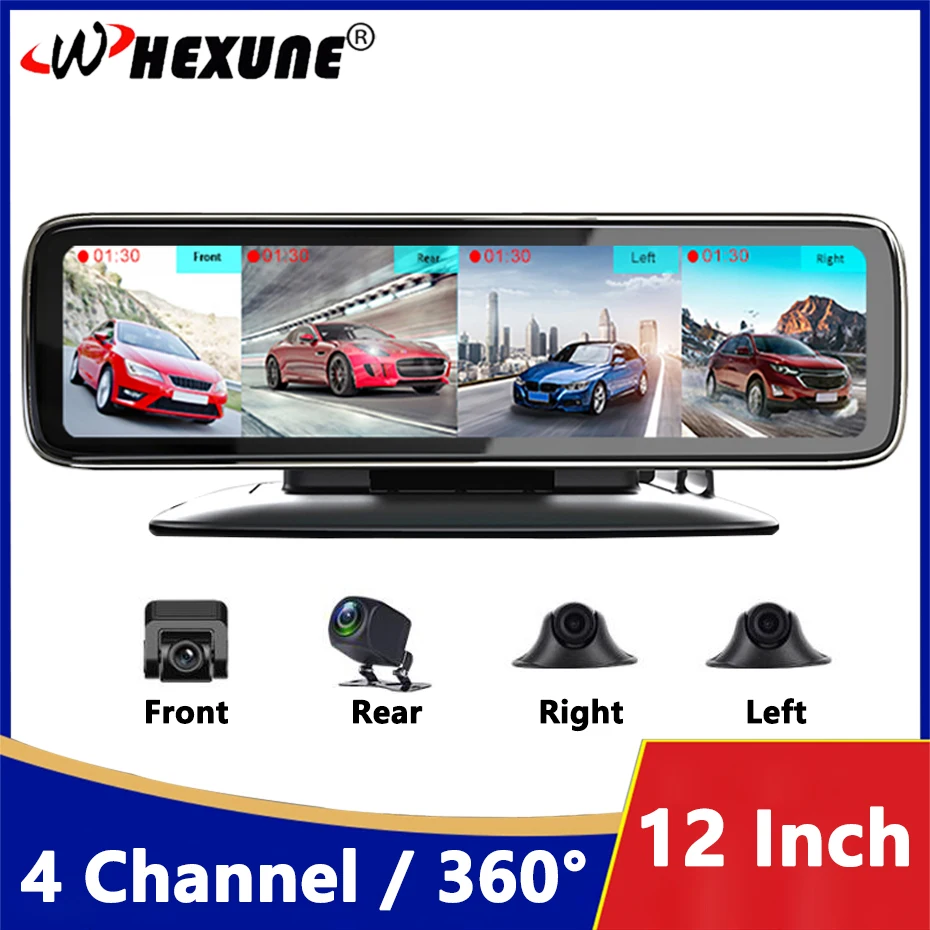 WHEXUNE 4 канала 12 дюймов Видеорегистраторы для автомобилей Камера...
