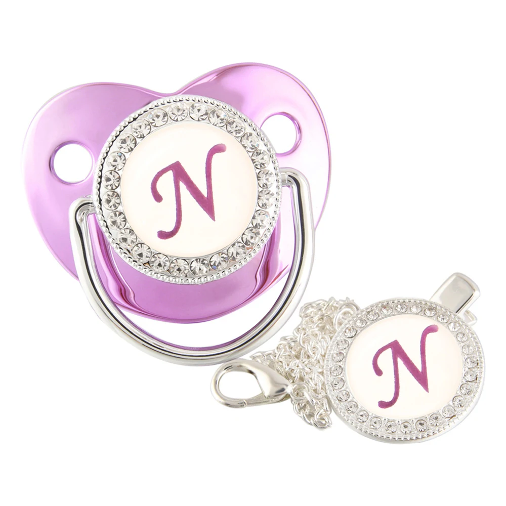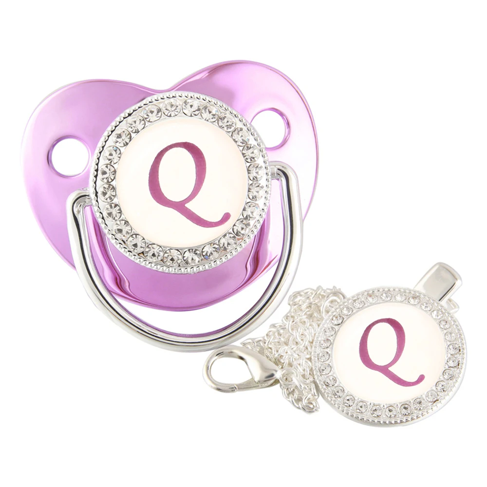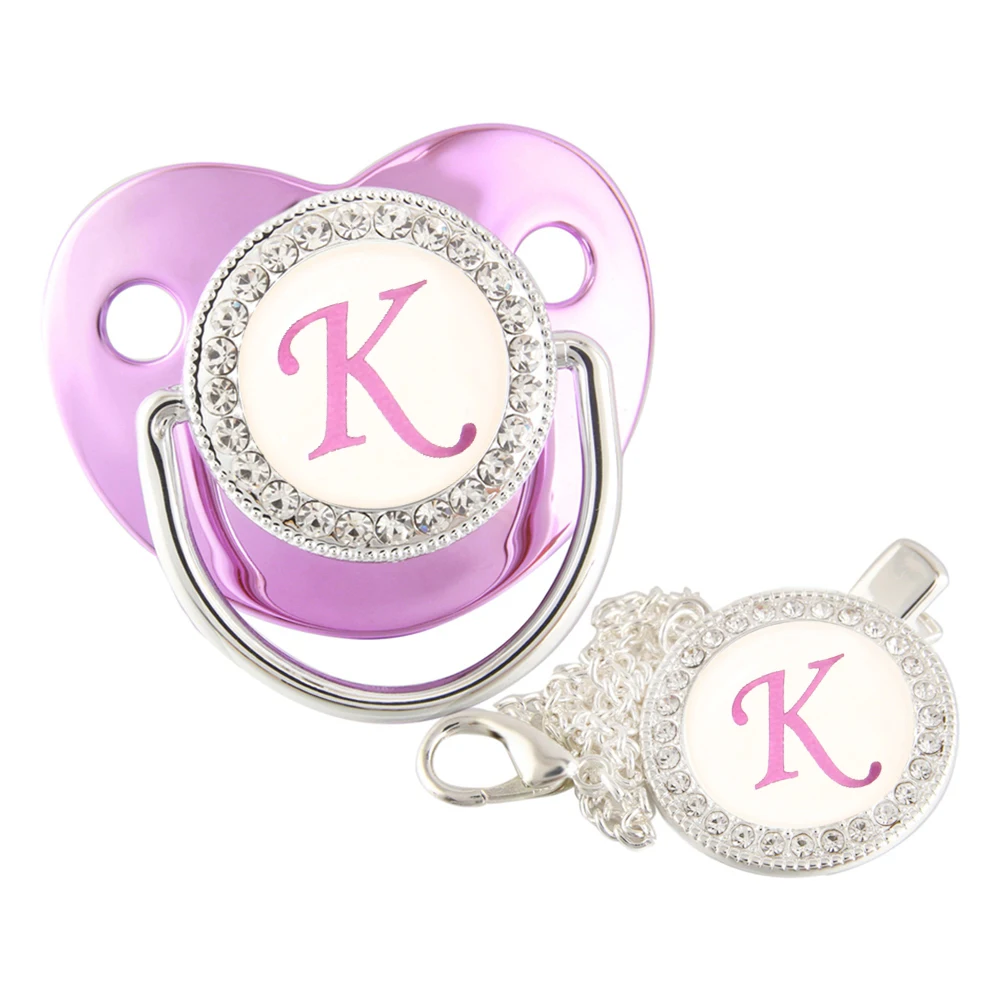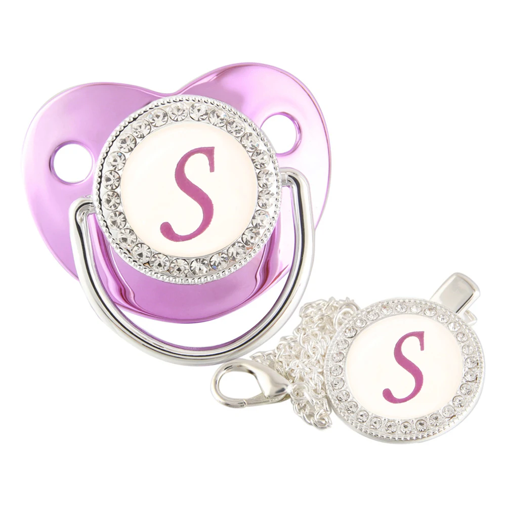 Bling 26 название Начальная надпись детская пустышка с зажимом Металл фиолетовый Серебряный новорожденный пустышка без BPA 0-12 месячный ребенок соски