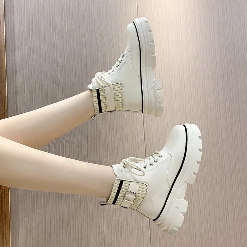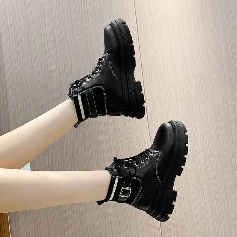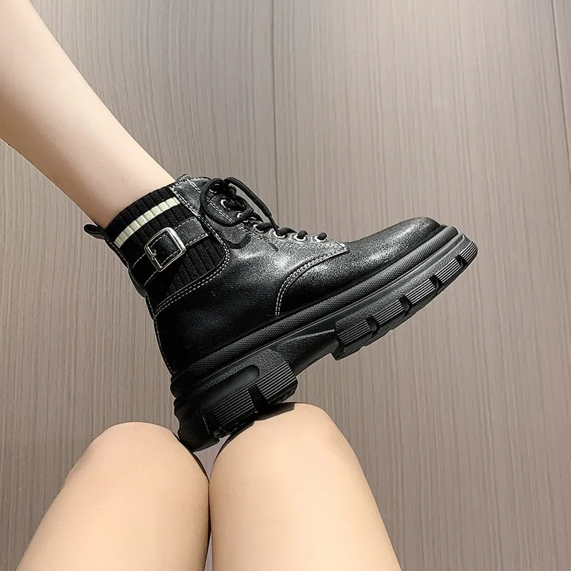 Женские ботильоны 2022, весенние мотоциклетные ботинки, обувь на платформе и толстом каблуке, женские нескользящие модные ботинки с круглым носком