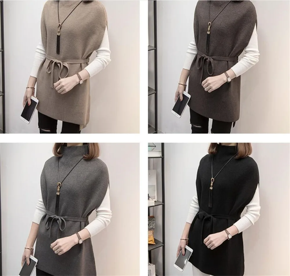 Комплект пуловеров, зимнее платье-свитер с высоким воротником, Женская длинная жилетка, одежда, вязаные свитера, пуловеры, топы, женское платье 2021