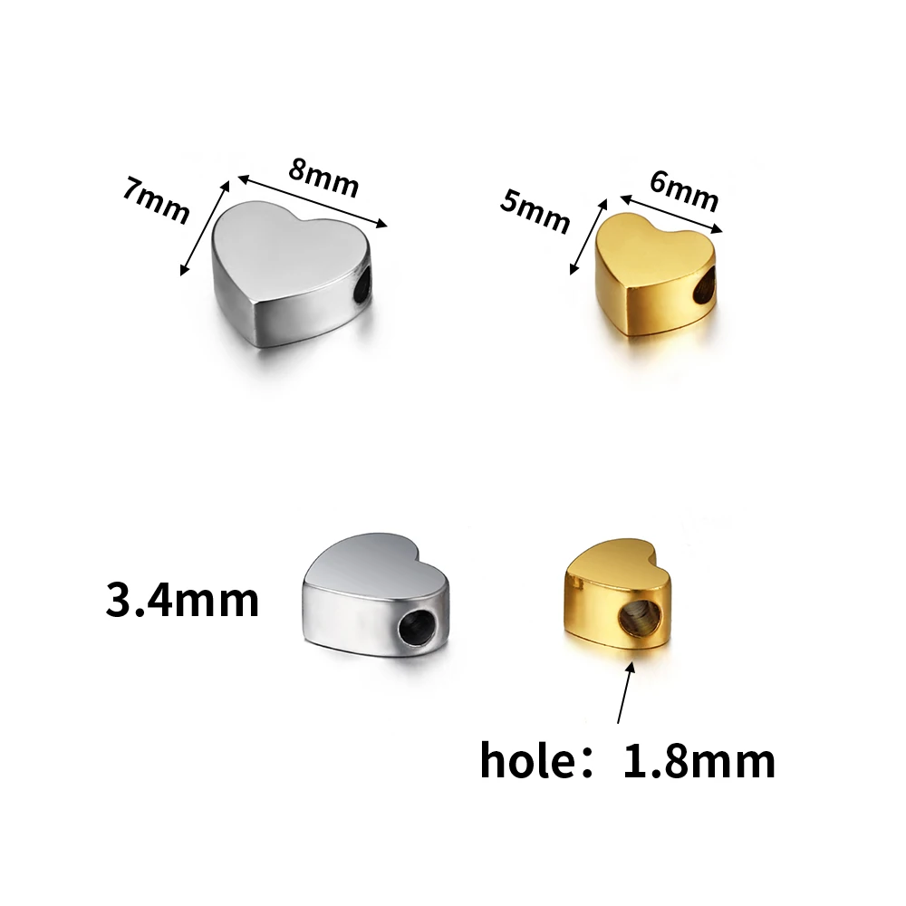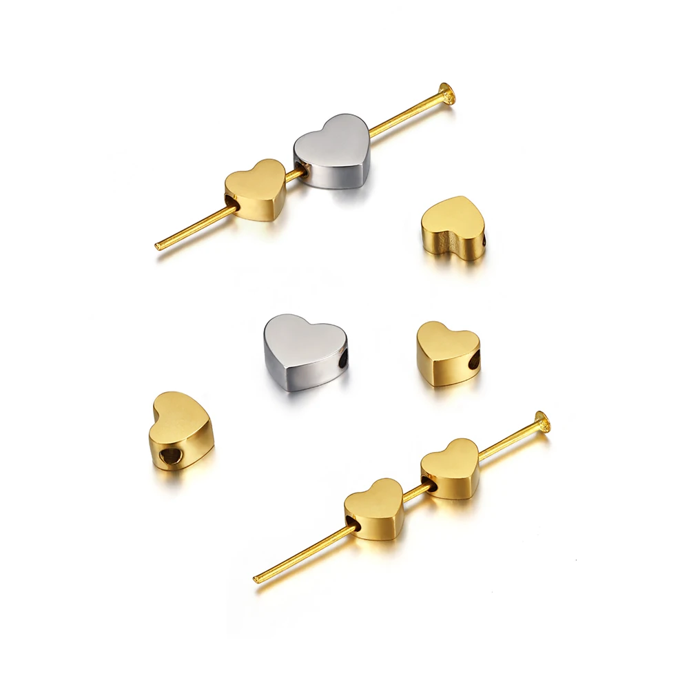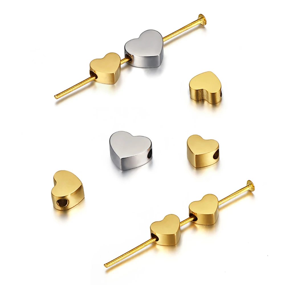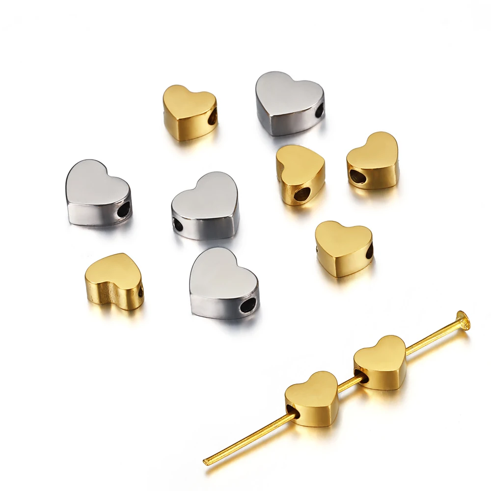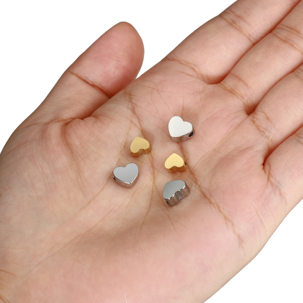 Золотые бусины в форме сердца из нержавеющей стали, 5 шт., 8 мм, бусины с отверстиями для рукоделия, фурнитура для изготовления ювелирных изделий
