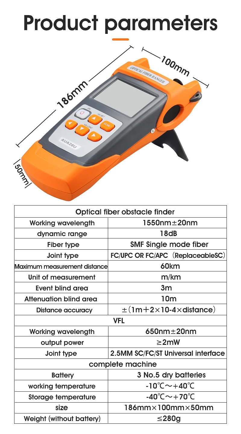 Мини OTDR AUA28U SGOT04 1550 нм FTTH 60 км VFL 60 км волоконно-оптический Волоконно-оптический отражатель со встроенным VFL с сенсорным портом FC SC
