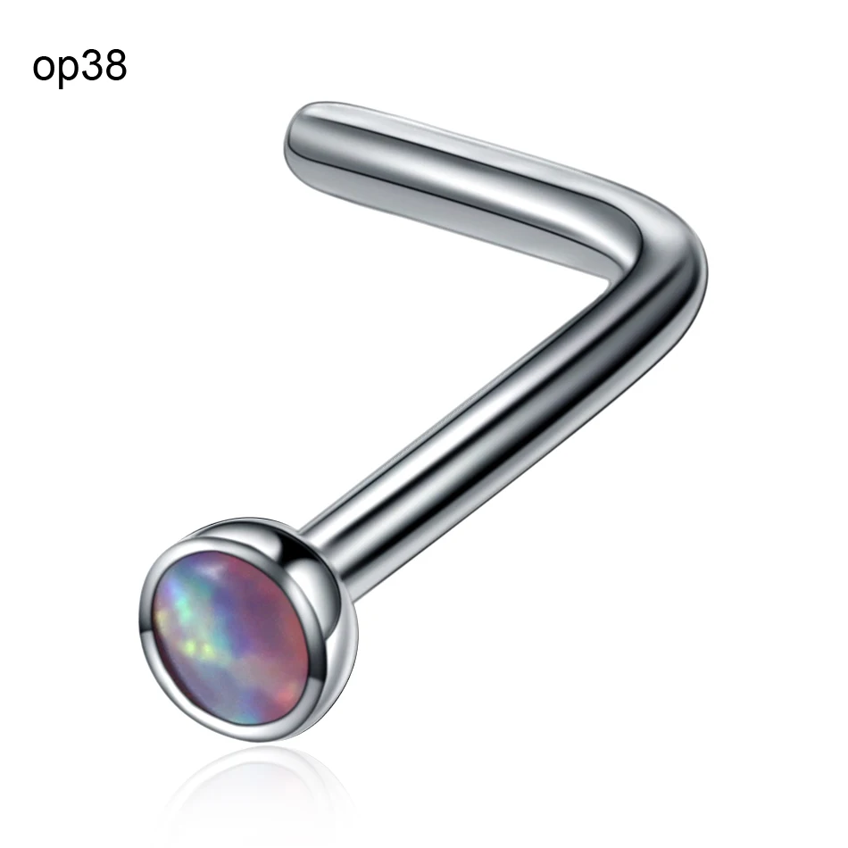 Кольцо-прокол женское из титана G23, с опалом, с винтом в носу, юве...