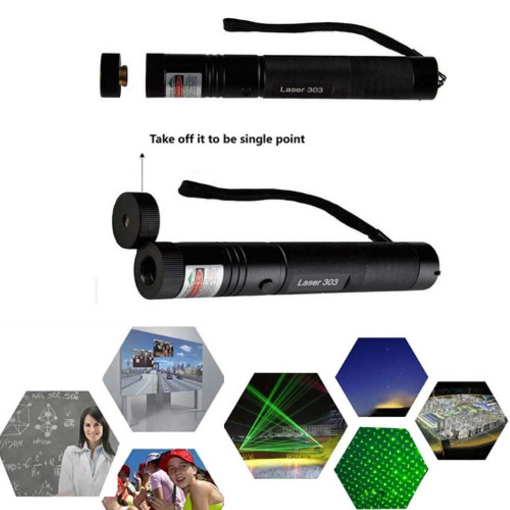 Зеленая лазерная указка, 10000 м, 303 нм, лазерная указка с высокой мощностью, лазер с регулируемым фокусом и лазером, без зарядного устройства, аккумулятор для охоты