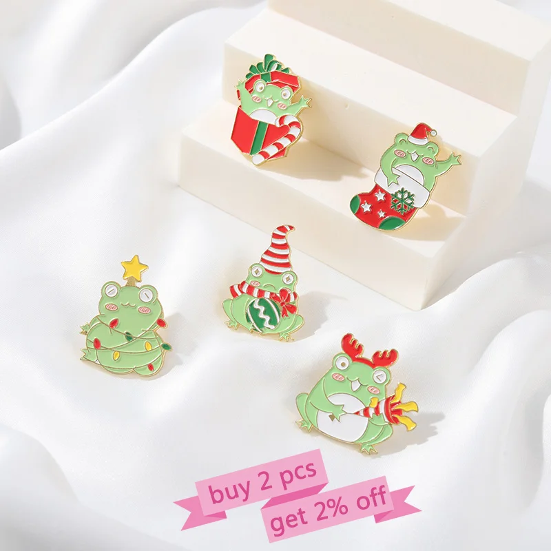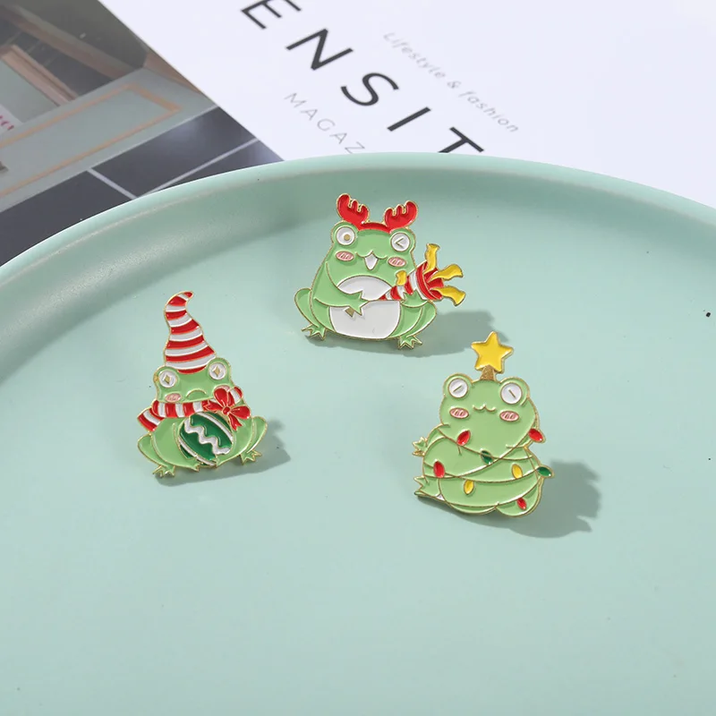 Рождественская лягушка, эмалированные булавки, индивидуальная волшебная палочка, женская шляпа, значок, Детская мультяшная бижутерия, новогодний подарок для детей