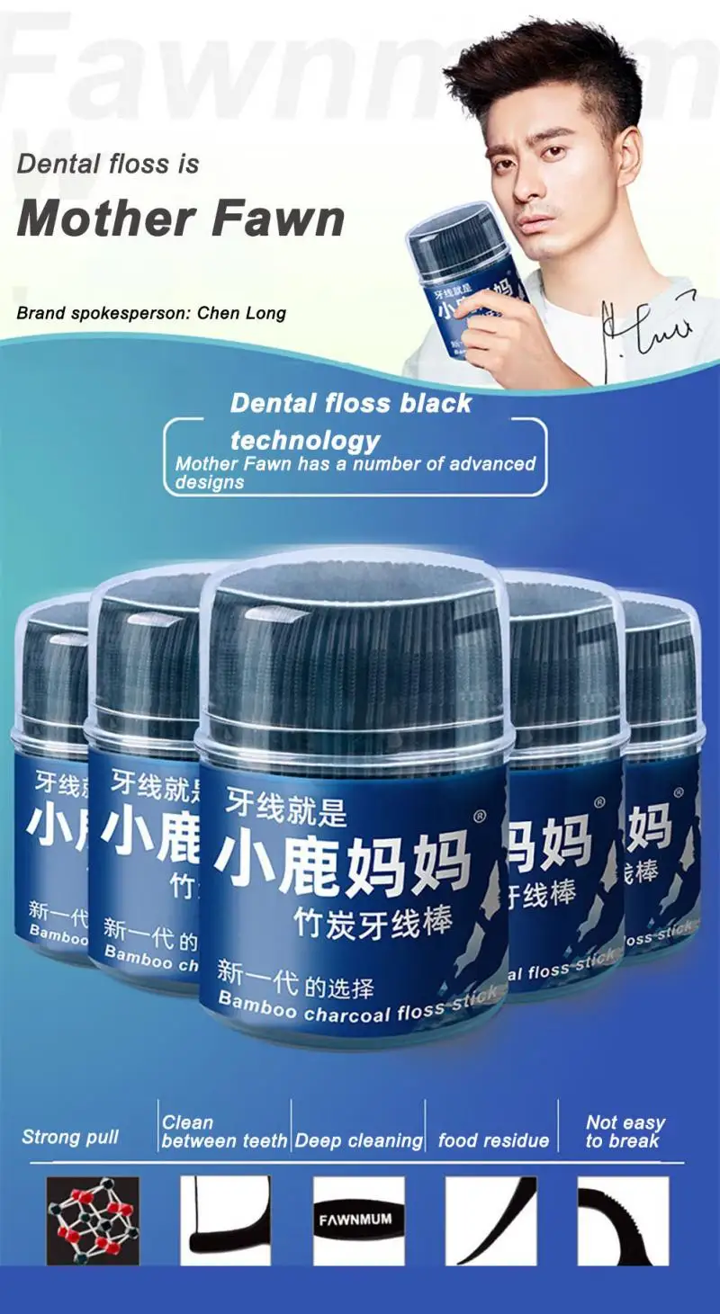 Материал нити прочный, который может легко удалить остатки пищи из зазора зубов, не повреждая десны