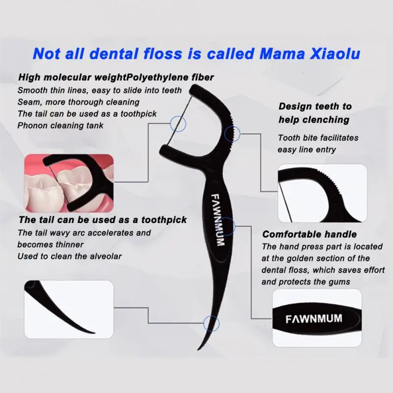 Модифицированная изогнутая ручка может использоваться в качестве зубочистки для более тщательной очистки трудных частей зубной нити