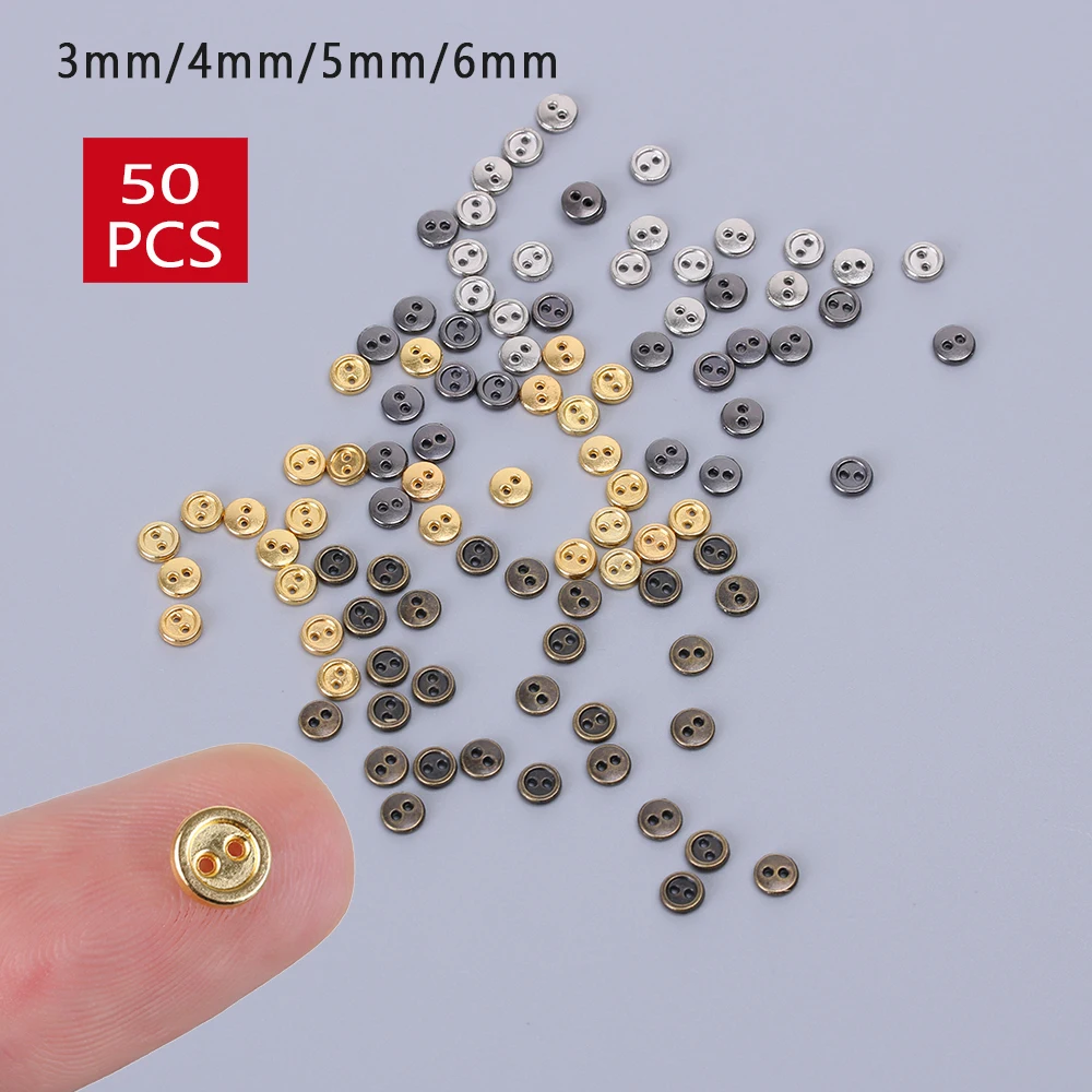 50 шт., круглые металлические пуговицы для куклы, 3 мм, 4 мм, 5 мм, 6 мм, 7 мм, 8 мм