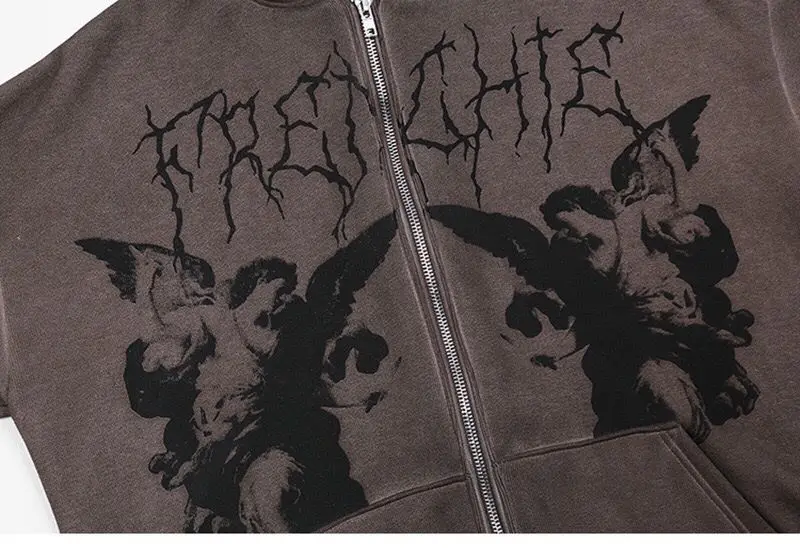 Женский свитер с капюшоном и принтом в виде красивых ангелов Y2K, уличный кардиган унисекс на молнии с длинным рукавом и карманами на осень и зиму, куртка