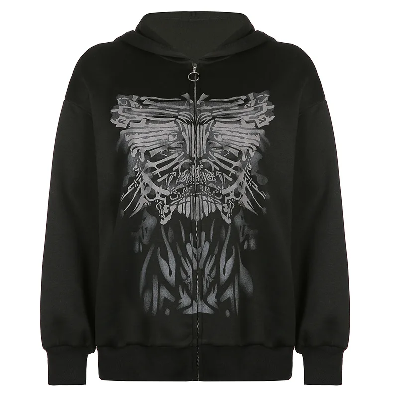 Y2K гранж-панк толстовки большого размера с принтом бабочки черепа ...