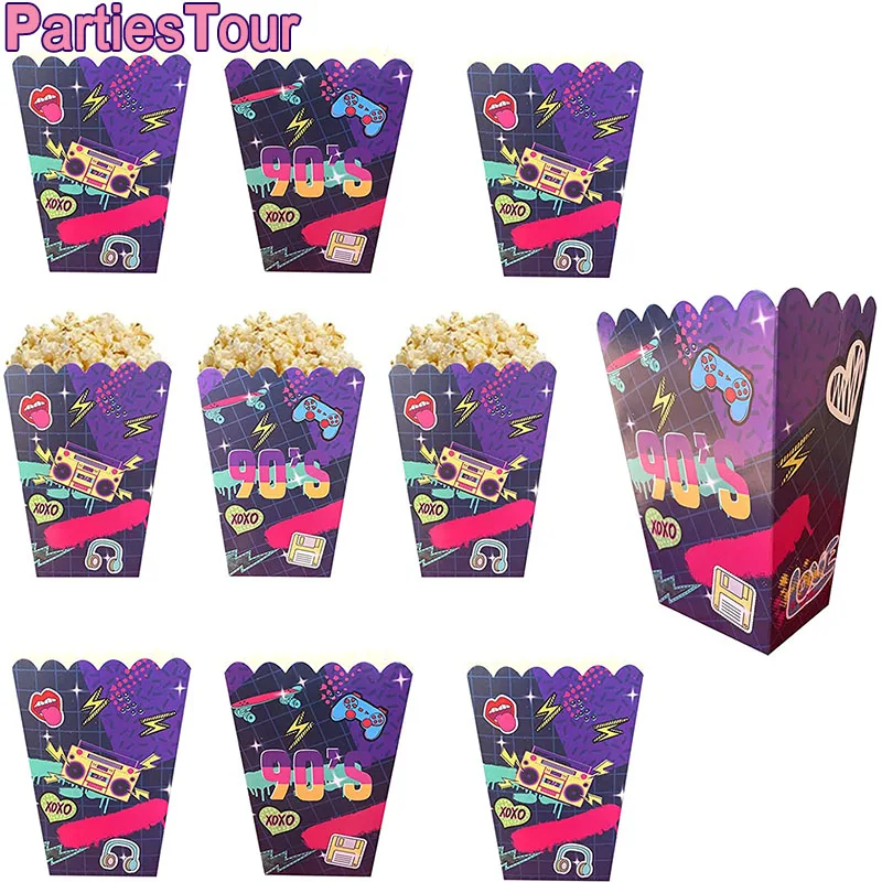 12 упаковок 90s хип-хоп коробки для попкорна 90s украшения для тематических вечеринок назад в 1990 конфеты контейнеры для печенья товары для вечеринок