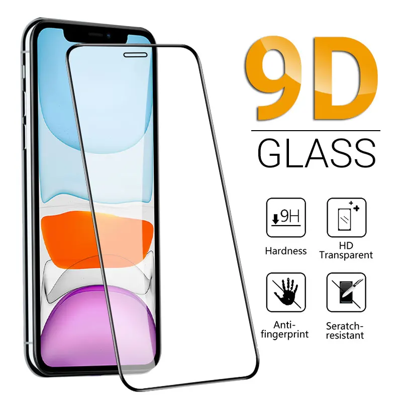 Закаленное стекло 9D для iPhone 12, защита экрана с полным покрытие...