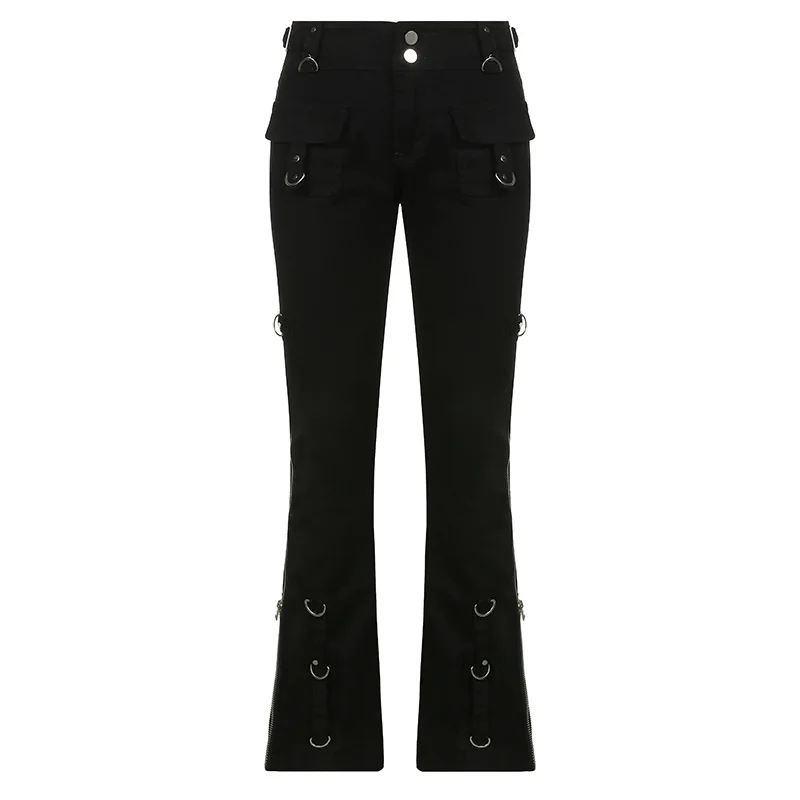 Женские готические черные джинсы-карго в стиле панк, Осенние темные...