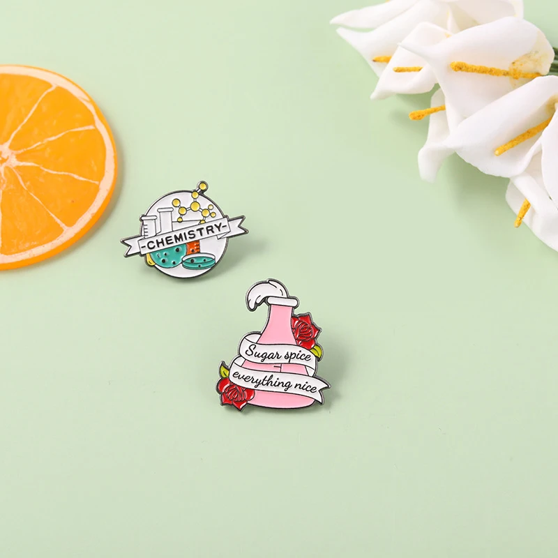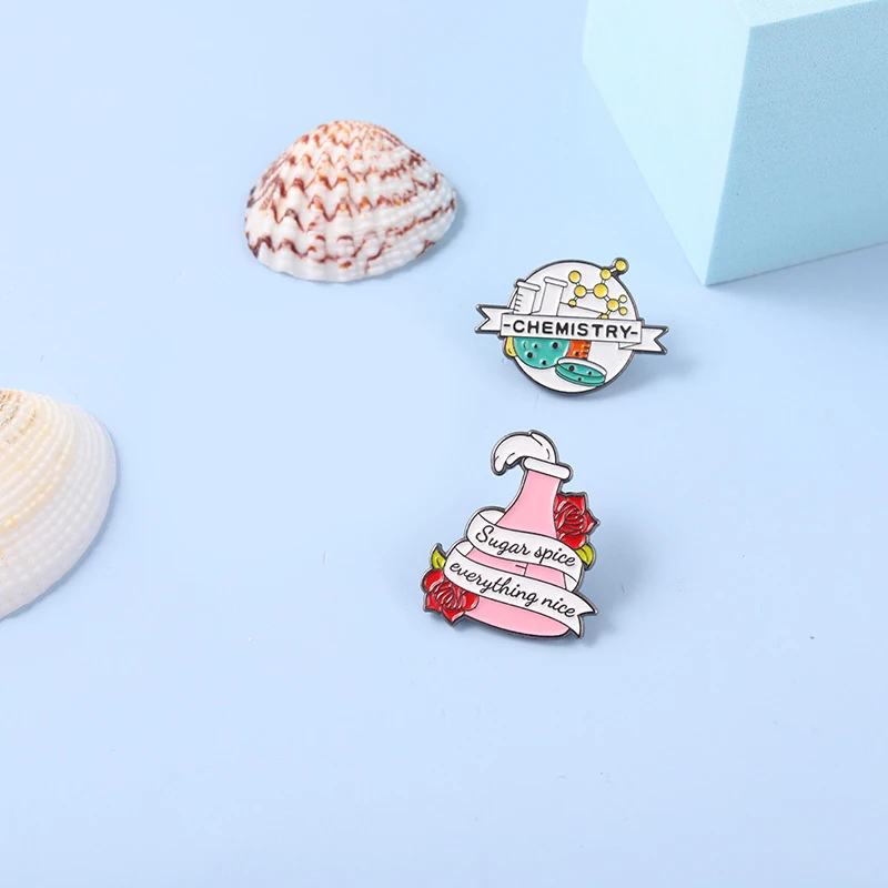 Научные милые эмалевые булавки, химические реагенты, тест-трубки, х...