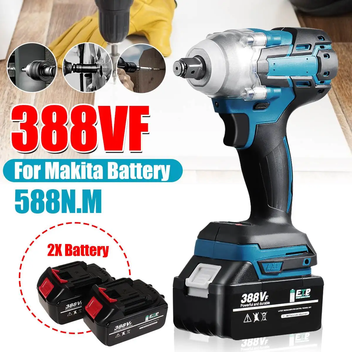 Бесщеточный Электрический ударный гайковерт 388VF 588N.M, перезаряжаемый, 12 розетки, фотоотвертка, электроинструменты для батареи Makita